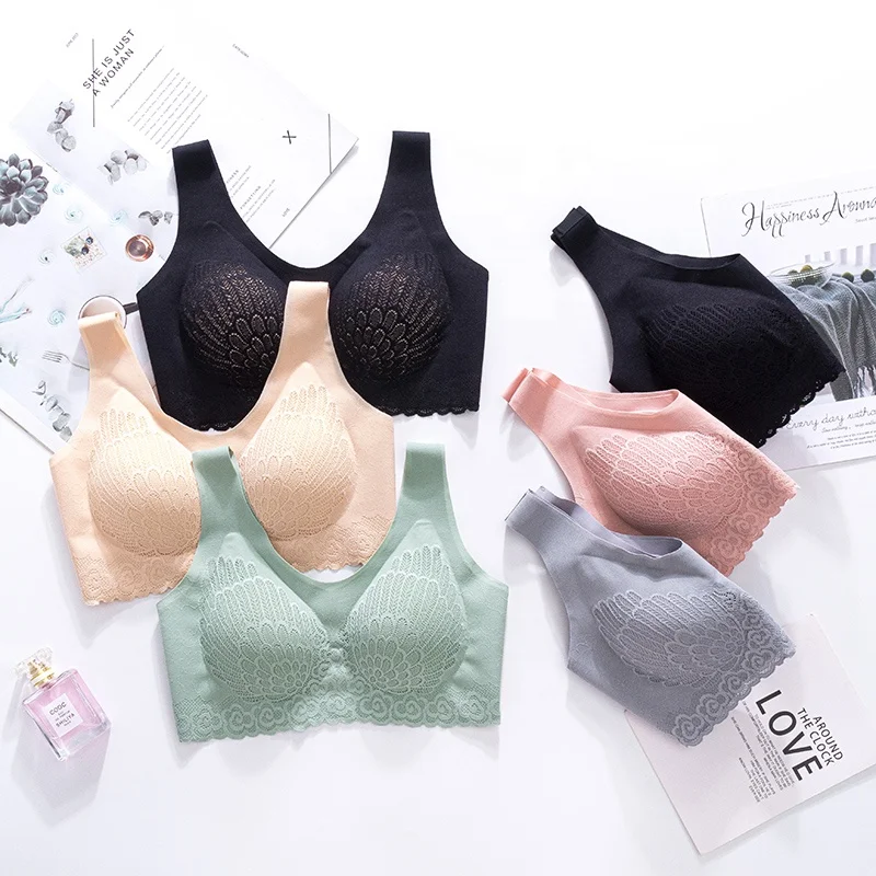 Бюстгальтер женский бесшовный, кружевной с крыльями, из пенолатекса...
