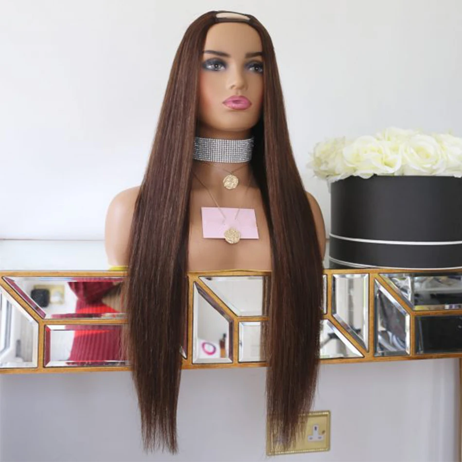 Омбре блонд человеческие волосы U часть парики 180% Плотность бразильские волосы Remy парики прямые коричневые средние открытые Upart парики черные волосы парики