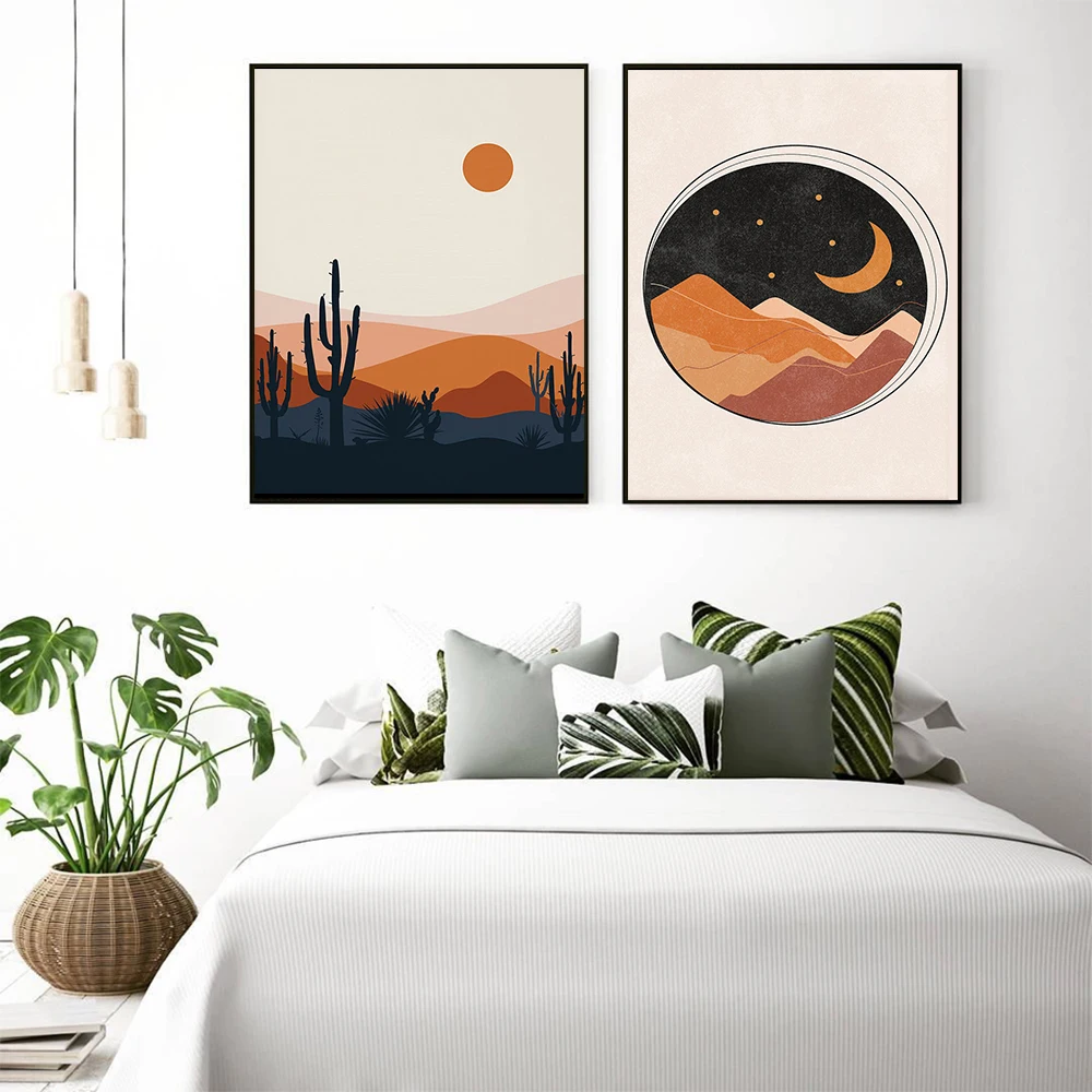 Абстрактный пейзаж пустыня кактус художественные плакаты живопись З...