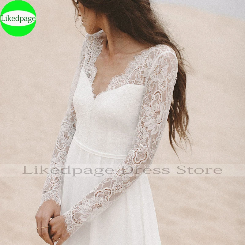 Свадебное платье невесты, с длинным рукавом, с кружевом на спине, 2021