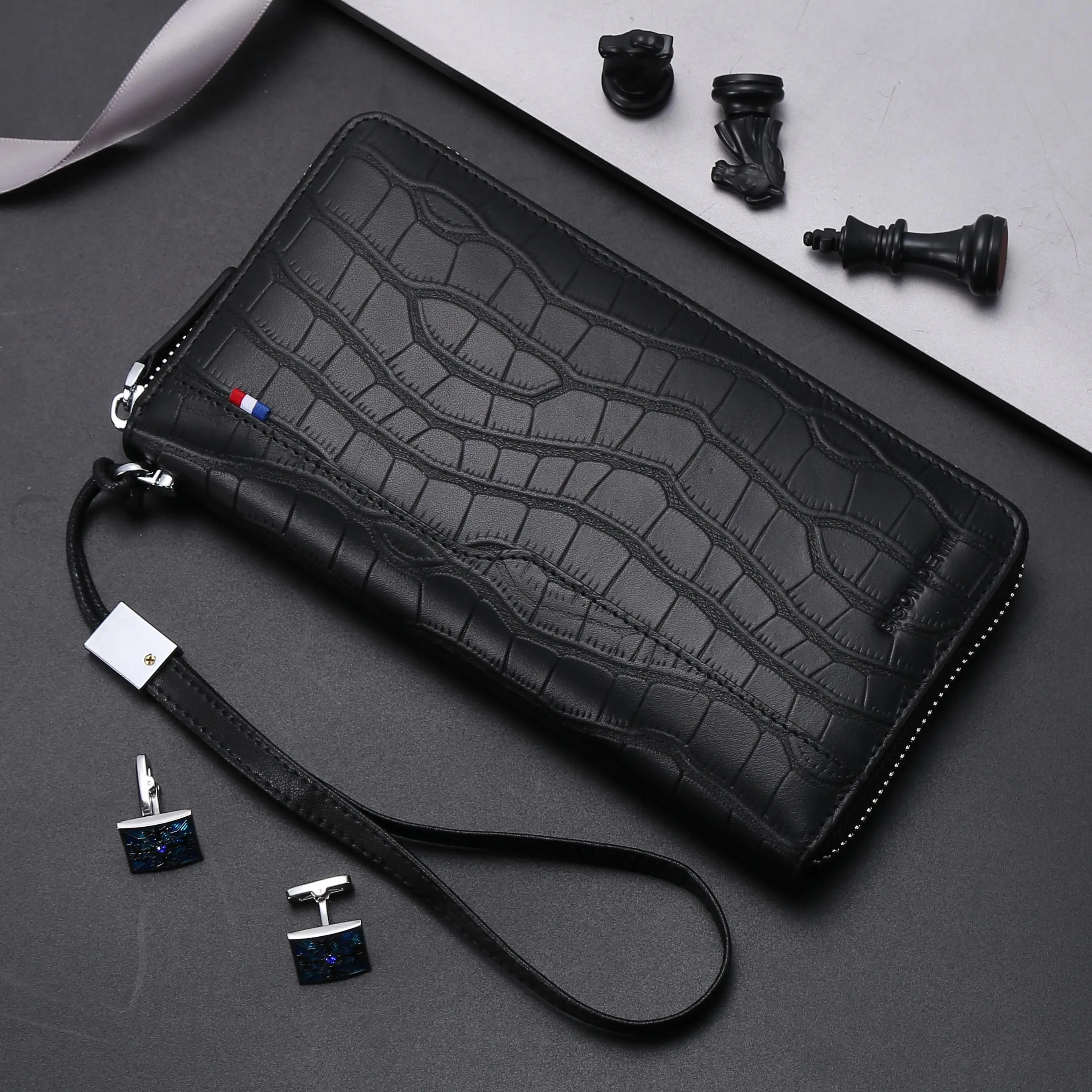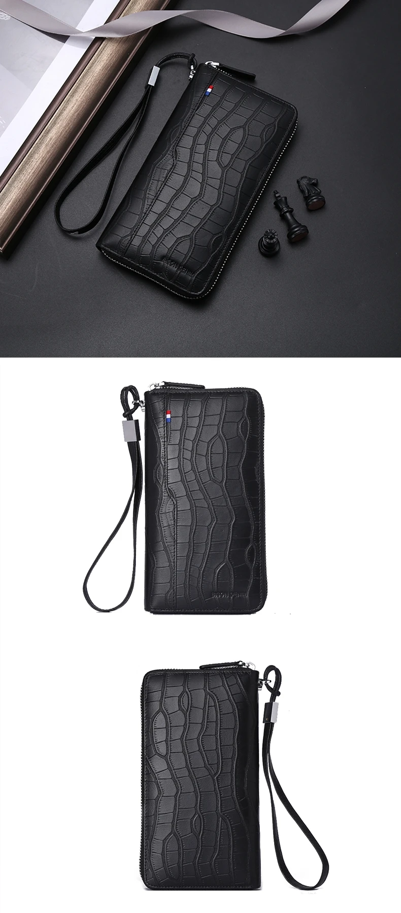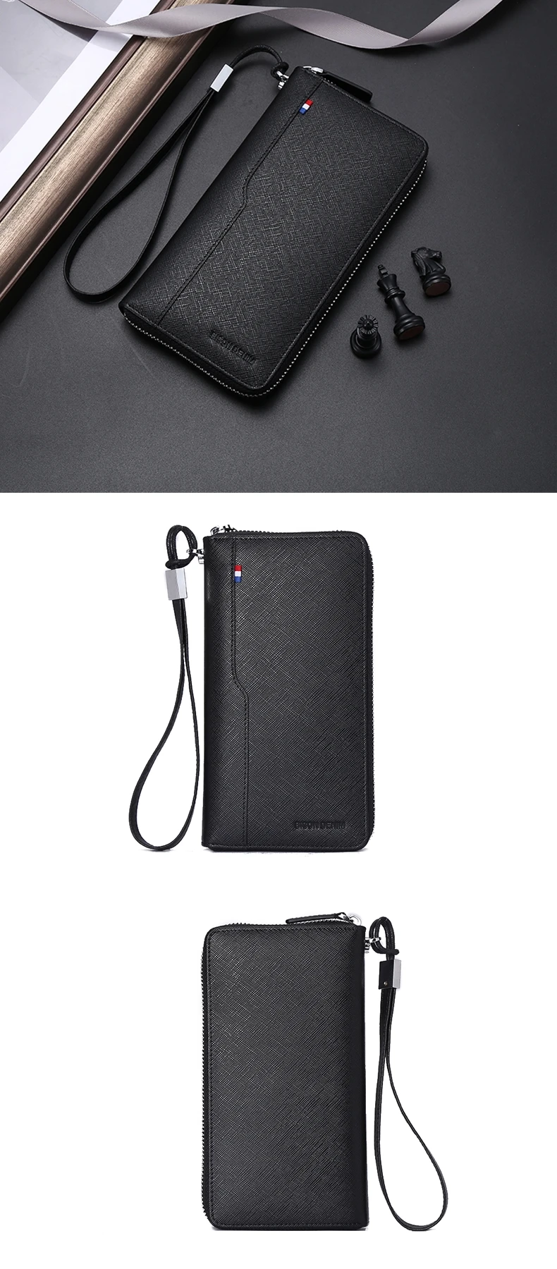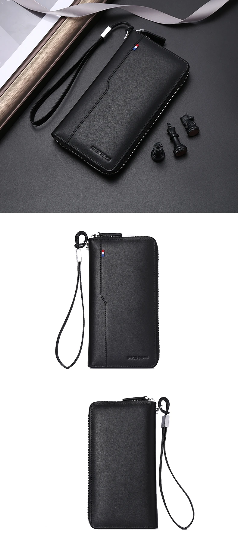 Мужской длинный клатч BISON DENIM, черный деловой Повседневный бума...