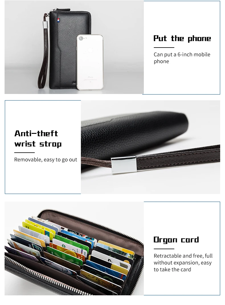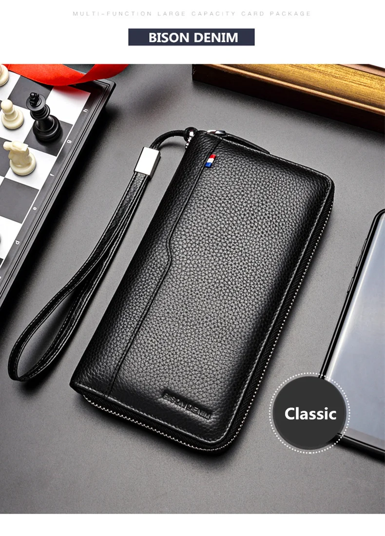 Мужской длинный клатч BISON DENIM, черный деловой Повседневный бумажник из натуральной кожи, кредитница, кошелек для телефона, 2019