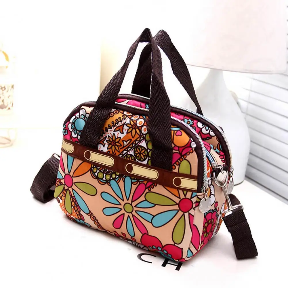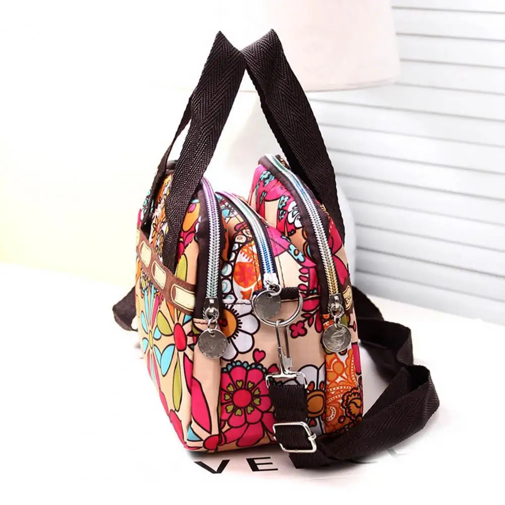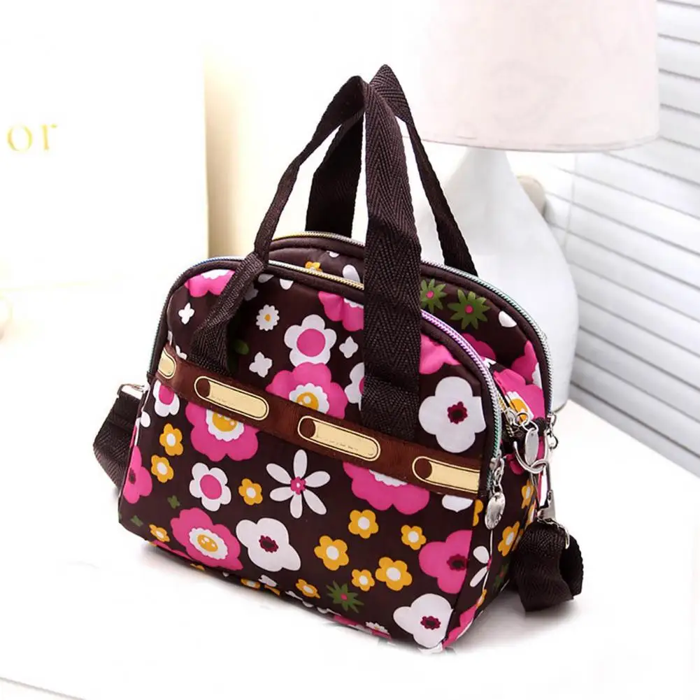 Сумка на плечо с несколькими карманами, сумка-тоут контрастных цветов на молнии, с цветочным принтом, для путешествий