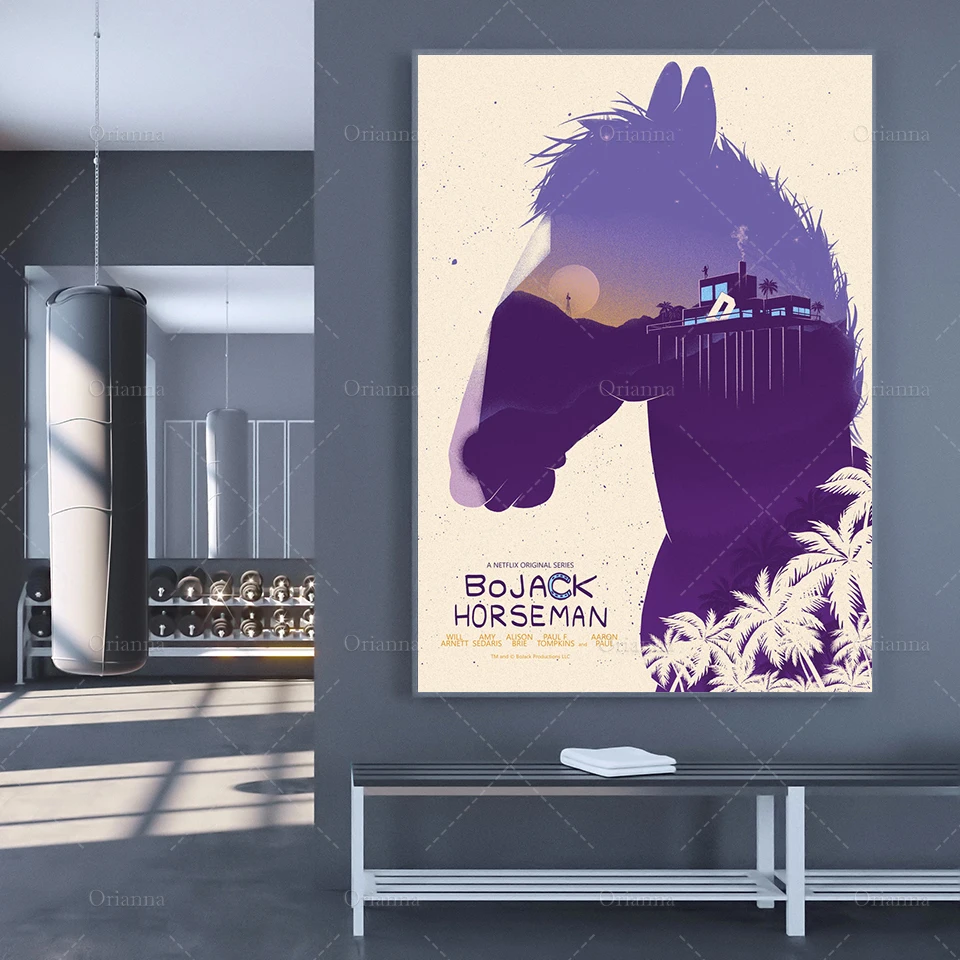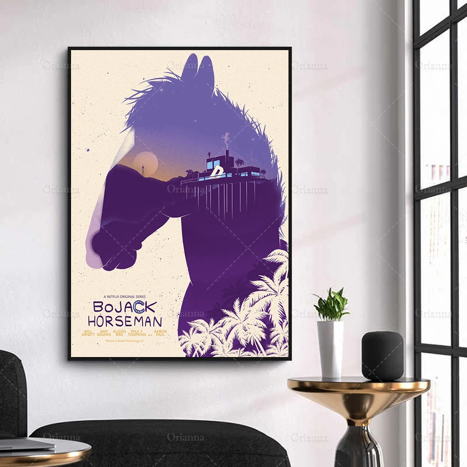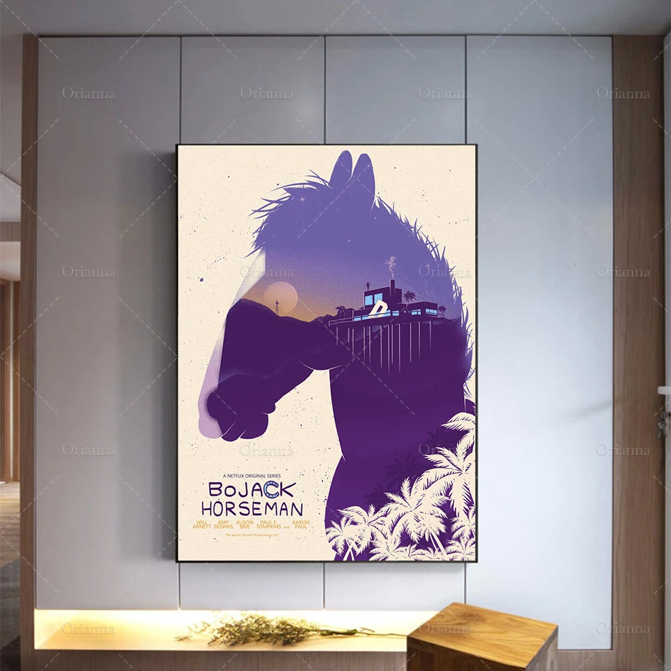 Абстрактный фиолетовый пейзаж лошади BoJACK HOR SE MAN настенная живопись холст современный принты для домашнего декора Плакат модульный для гостиной