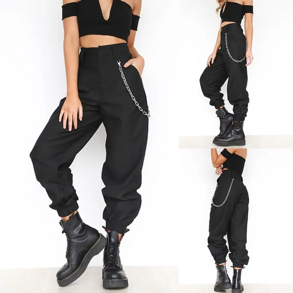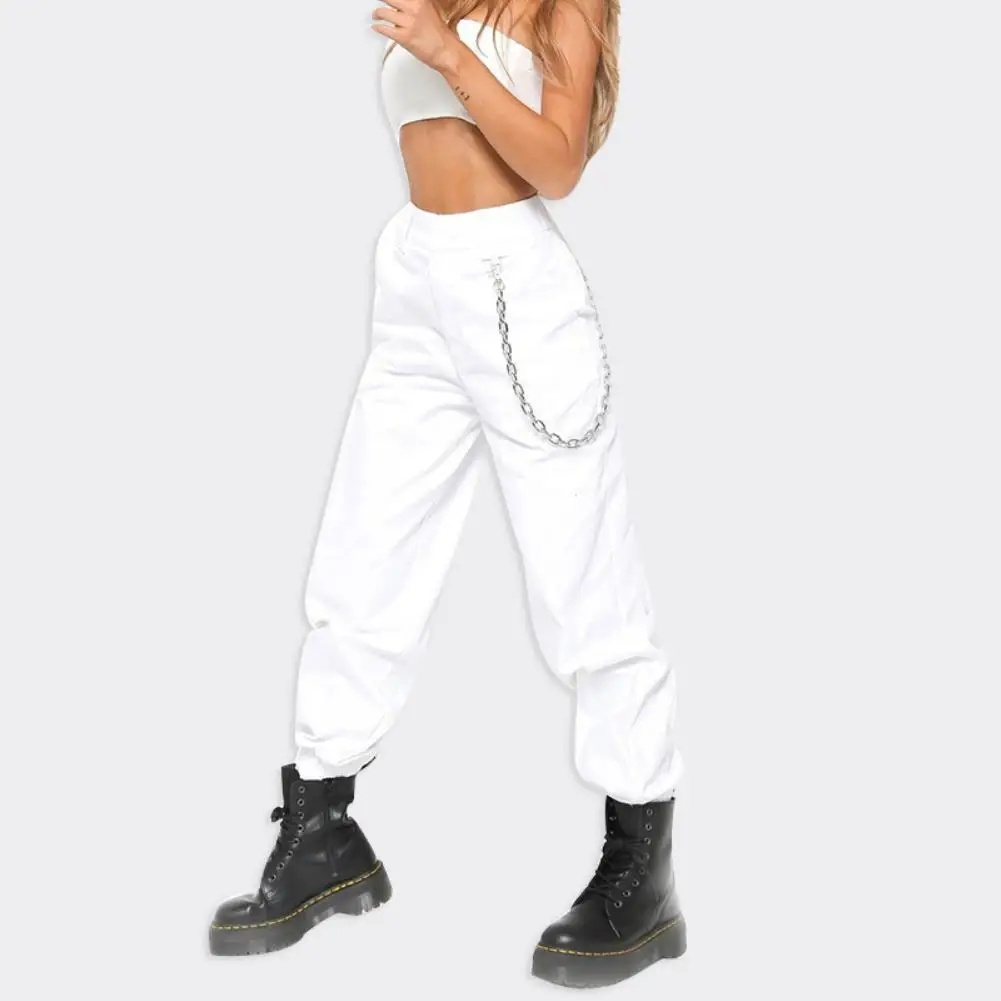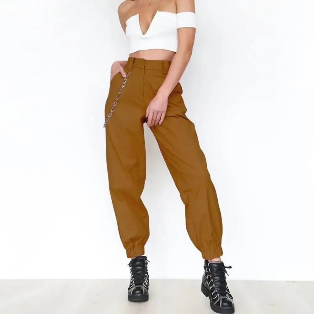 80% Лидер продаж! Повседневные Женские однотонные спортивные брюки-карго, свободные брюки с завязкой на лодыжке и цепочкой
