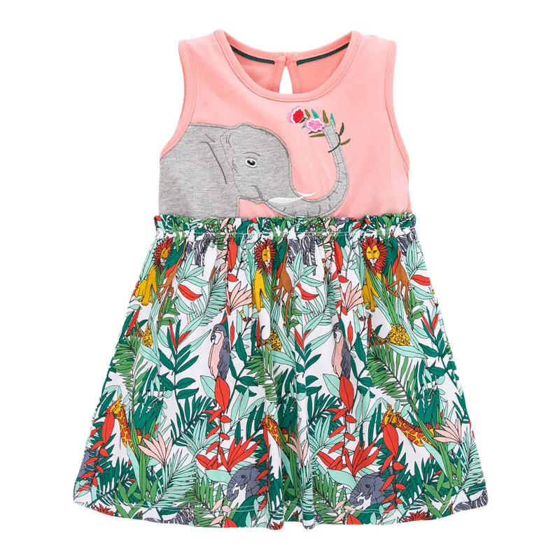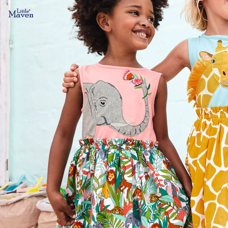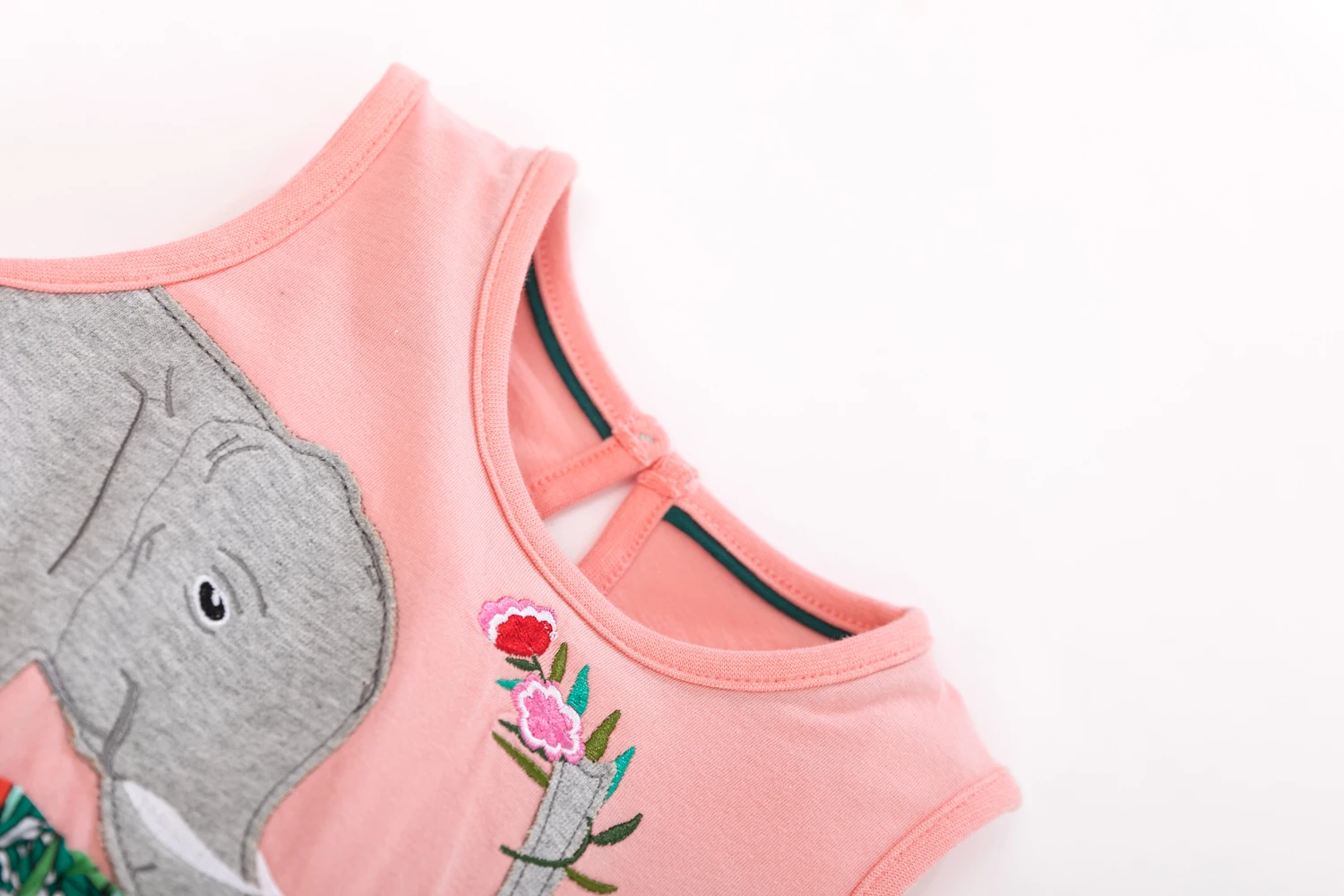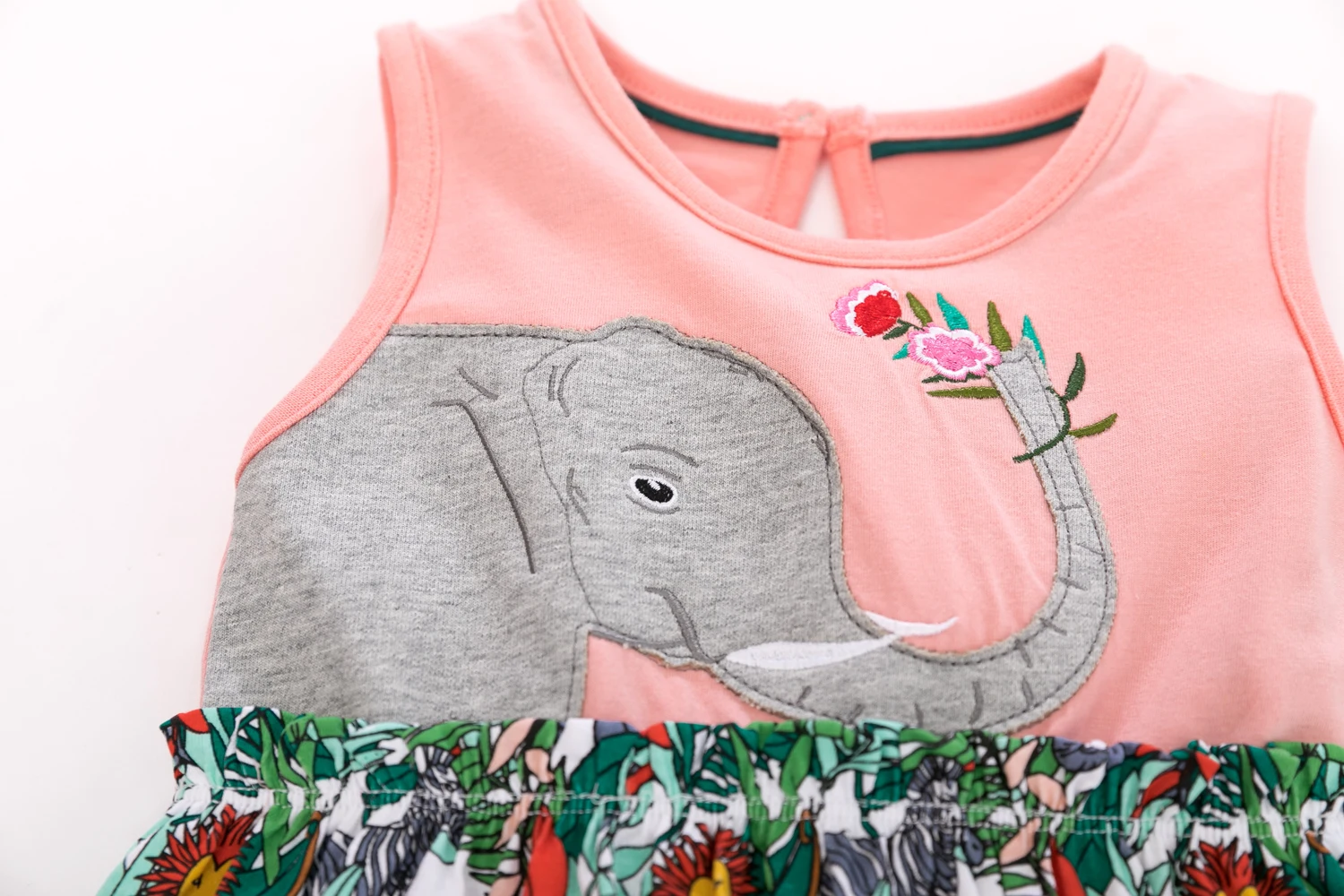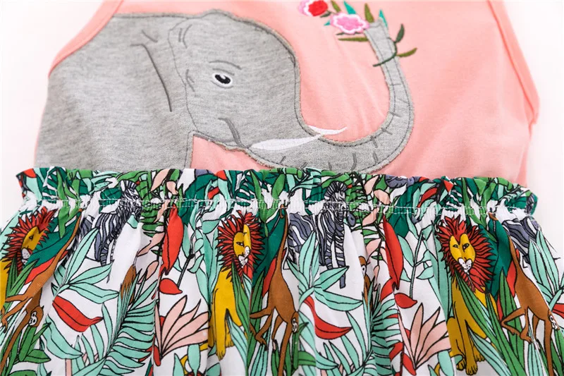 Little MavenНовая летняя детская мясо слона аппликациями в виде цветов с принтом с О-образным вырезом для девочек 2-7yrs с короткими рукавами из хлопка для девочек, вязаные платья