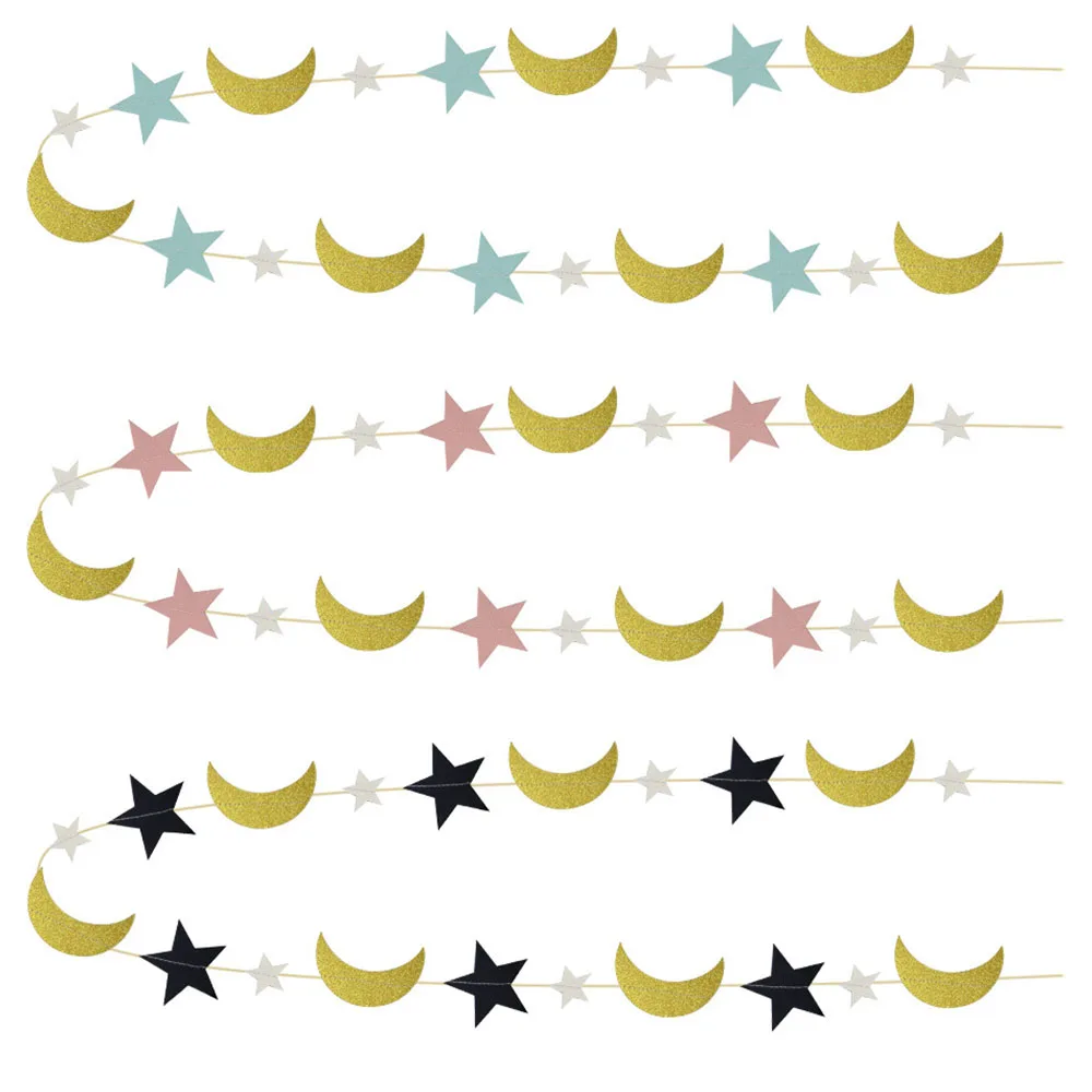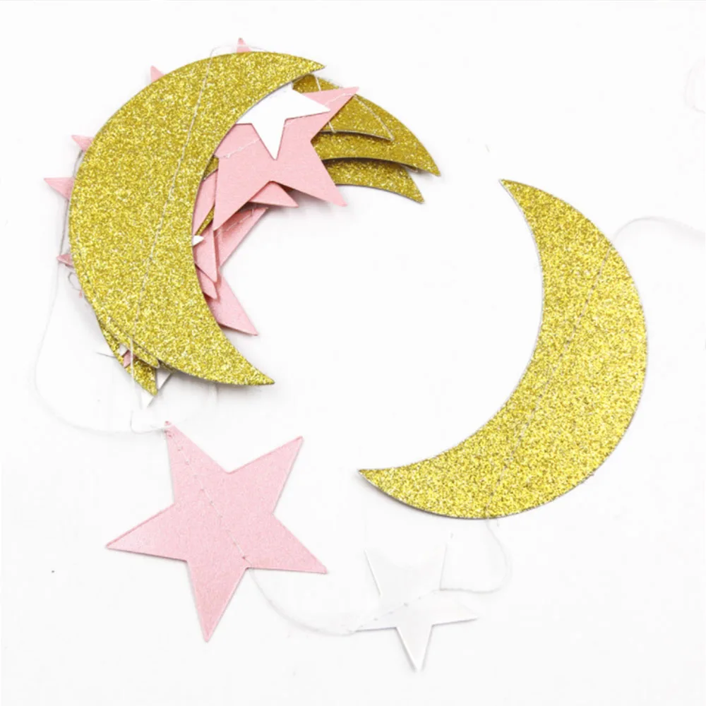 2 м длинной Луна, Звезды Рамазан Бумажная гирлянда баннер для вечеринки в честь Дня Рождения украшения Baby Shower подвесные Шторы Свадебные принадлежности