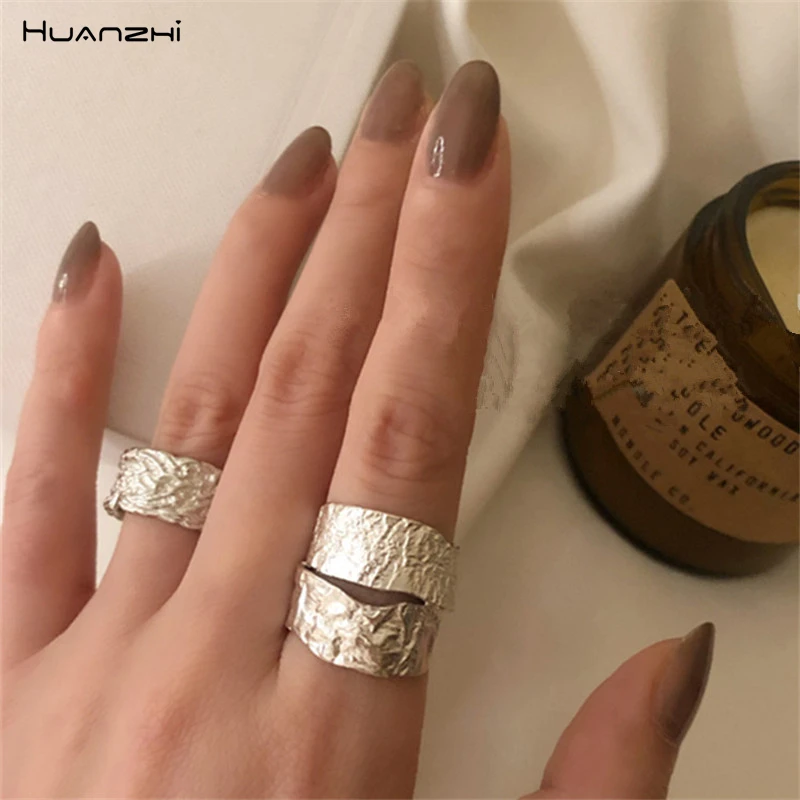 HUANZHI 2021 Новое модное кольцо INS неправильной формы с квадратным круглым камнем Любовь Сердце парные кольца на юбилей день рождения другу ювелирные изделия подарок