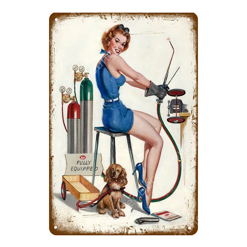 Металлические знаки American Pin Up для девушек, автомобиль, газова...