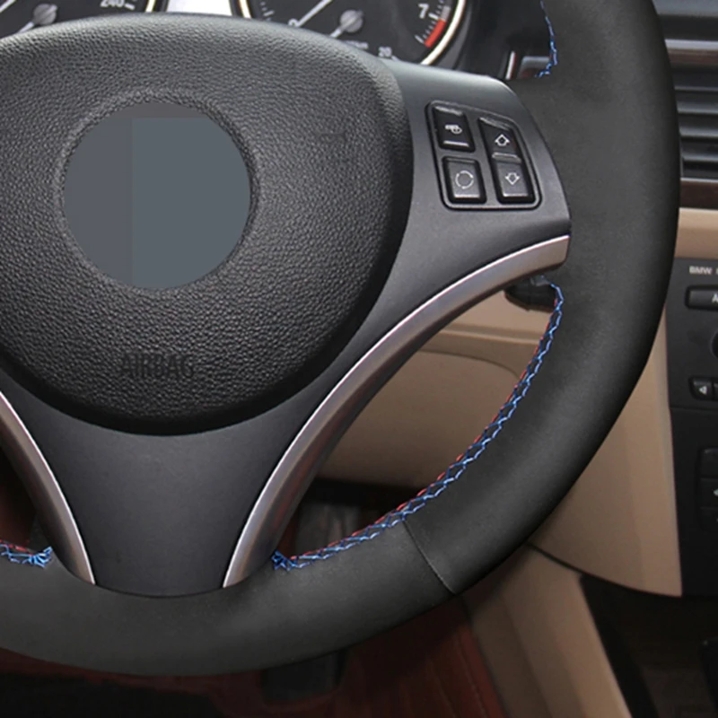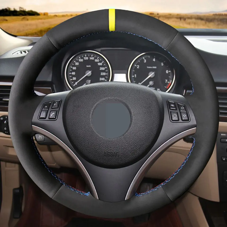 Сшитая вручную черная замша чехол рулевого колеса автомобиля для BM...