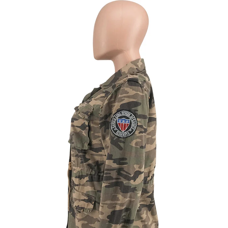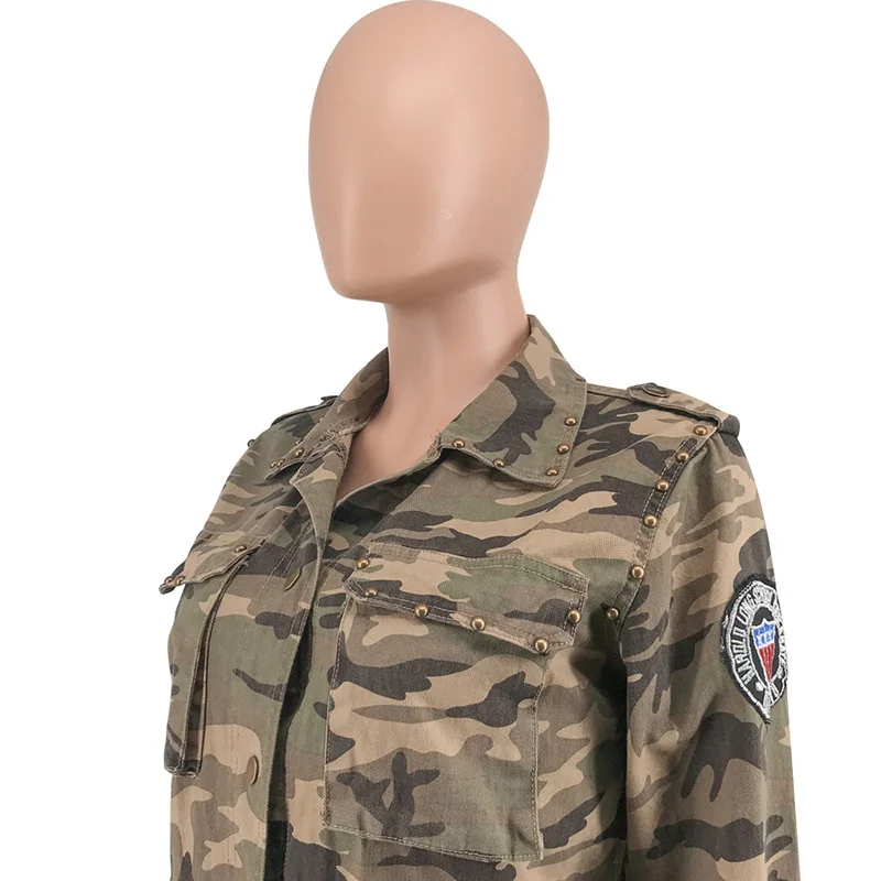 Осенняя одежда для женщин заклепочный патч Женское пальто с рисунком облегающая уличная одежда камуфляжная куртка с длинным рукавом оптовая продажа Прямая поставка
