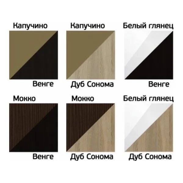 Количество упаковок (мест) 2 Страна производства Россия Цвет корпуса венге | венге | дуб | дуб Гарантия 24 мес Требуется сборка да Количество дверей 4 шт Цвет фасада белый | мокко | белый | дуб Материал корпуса ЛДСП Количество ящиков 1 Материал фасада МДФВНЕШНИЙ ВИД ТОВАРА