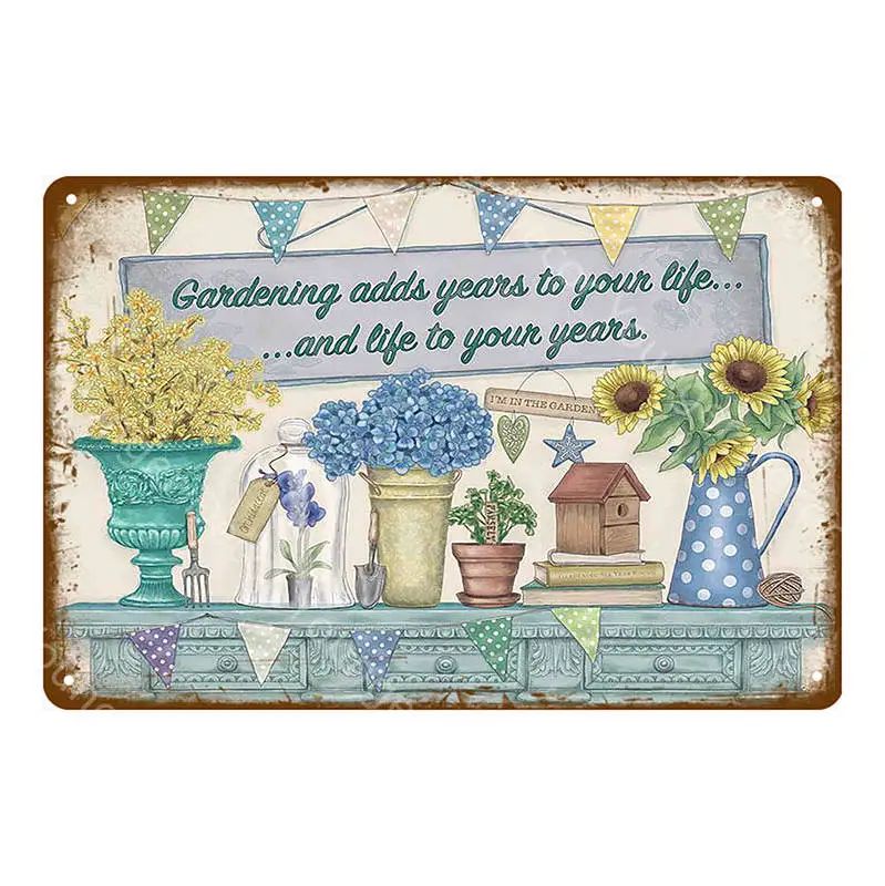 Винтажная жестяная вывеска с цветами, домашний декор, ретро металли...