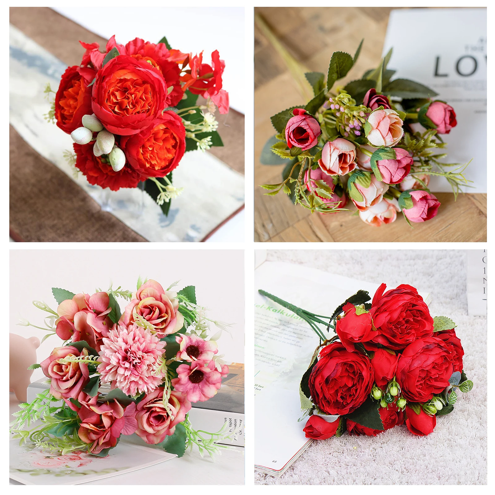 Красные искусственные цветы пиона чайной розы Осень шелковые искусственные цветы набор сделай сам для гостиной домашний сад свадебные украшения