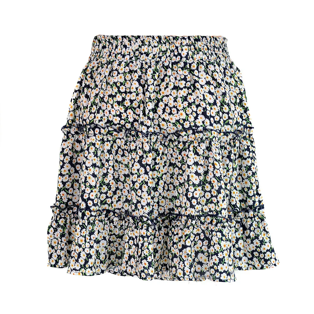 Летние пикантные женские юбки, летняя повседневная Пляжная Короткая вечерние ка Bohe с высокой талией, оборками и цветочным принтом, вечерняя женская летняя юбка