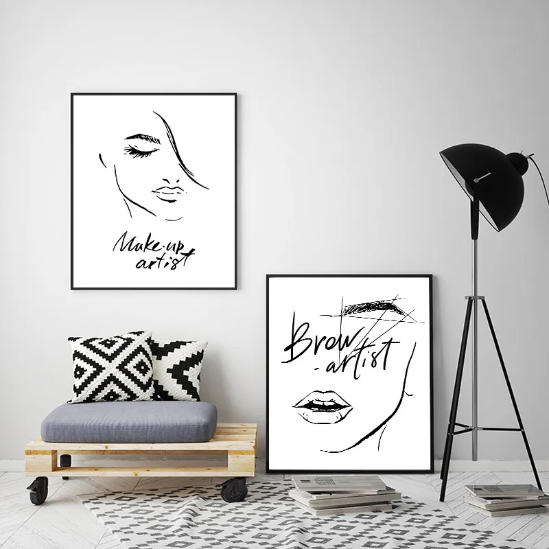 Модный макияж, настенное искусство, холст для бровей, художественный принт, губы, ресницы, плакат и печать, красота, для девочек, декор комнаты, Настенная картина для салона