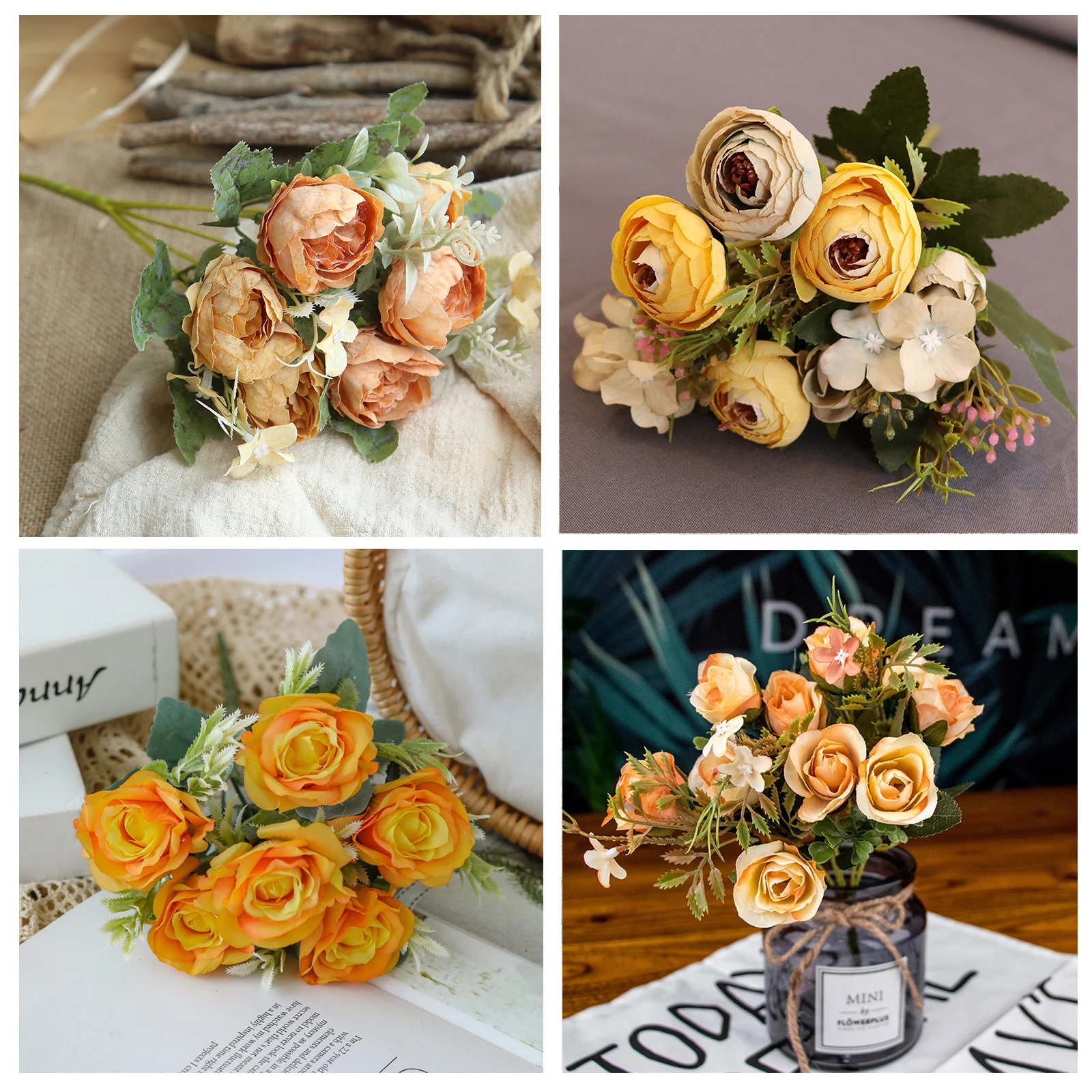 1 букет желтого цвета Искусственные цветы пиона чайной розы Осень шелковые искусственные цветы набор сделай сам для гостиной домашний сад свадебные украшения