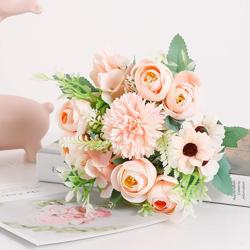 Искусственные шелковые цветы сделай сам, розовый Букет пионов, для украшения дома, свадьбы, скрапбукинга