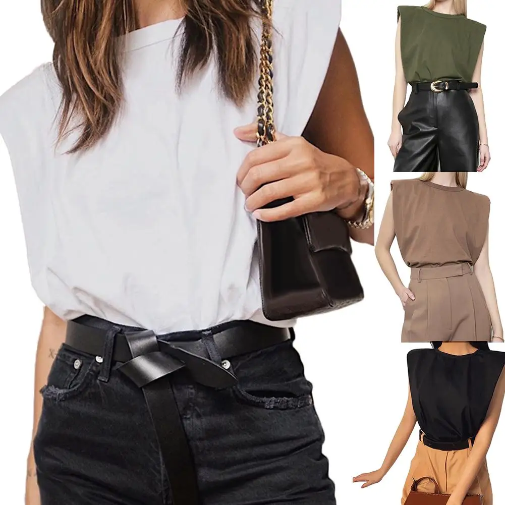 Для женщин Повседневное круглым вырезом плечевыми накладками; Джемпер без рукавов на бретелях топ, жилет Блузка без рукавов дна на бретелях топ, жилет Блузка