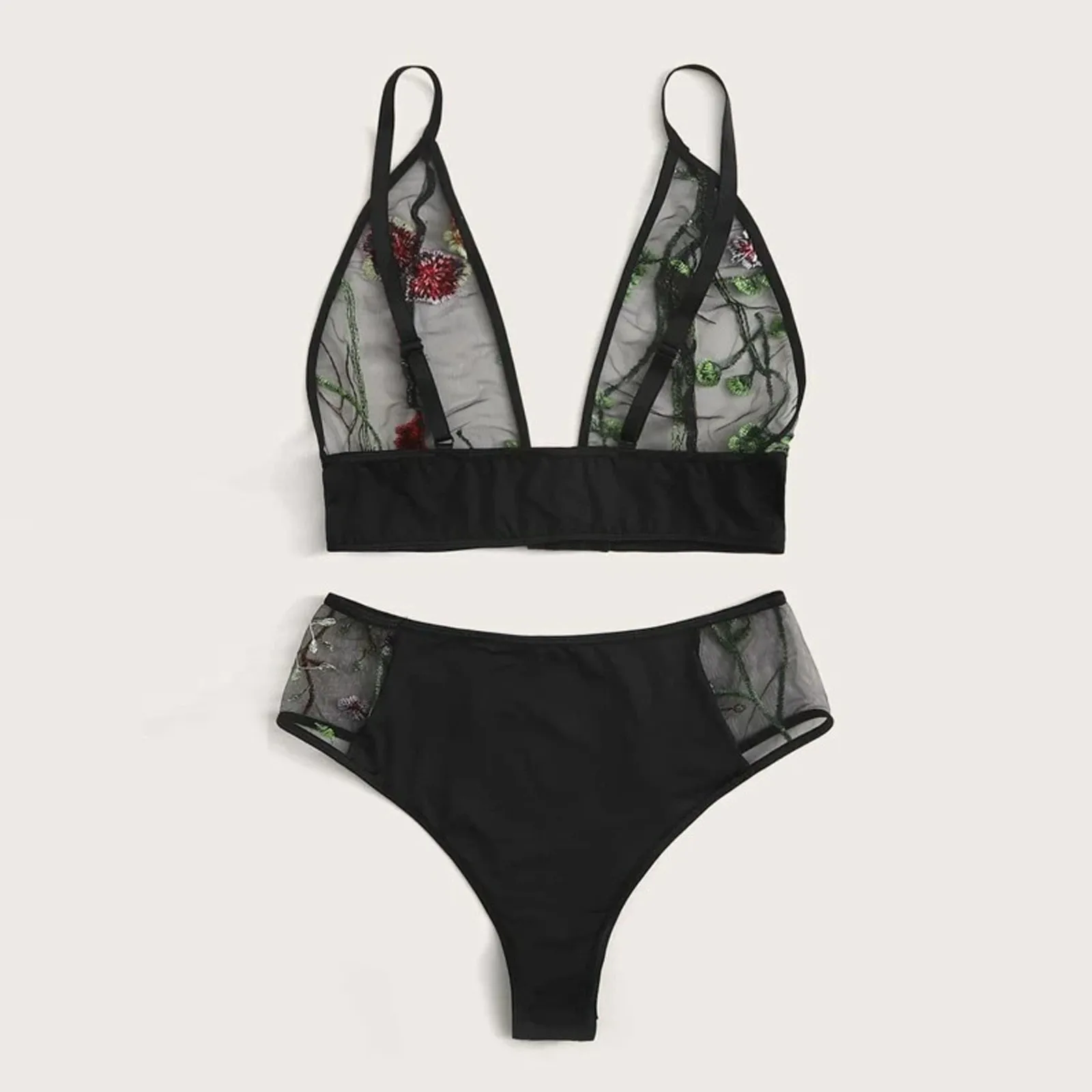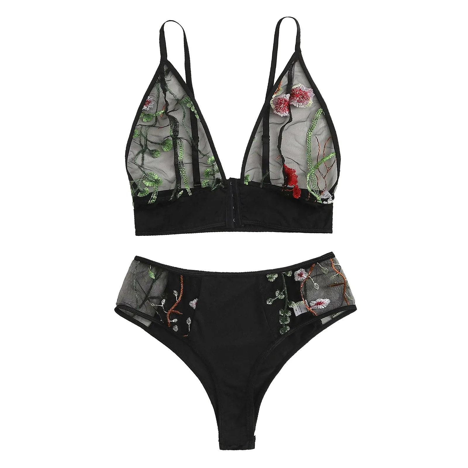 Женское сексуальное прозрачное нижнее белье с цветочной вышивкой, Сетчатое нижнее белье