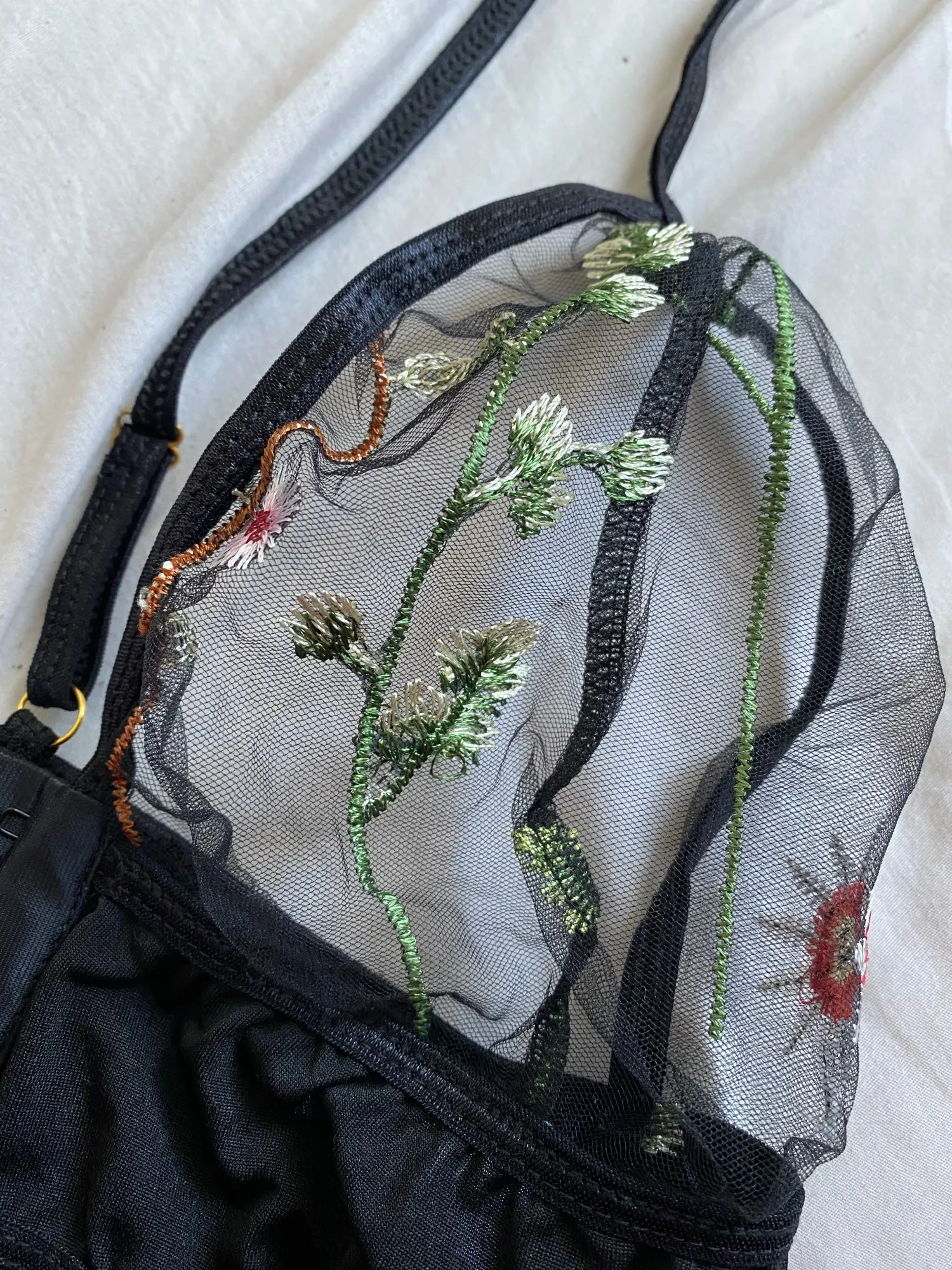Комплект экзотического нижнего белья с цветочной вышивкой, женское ...