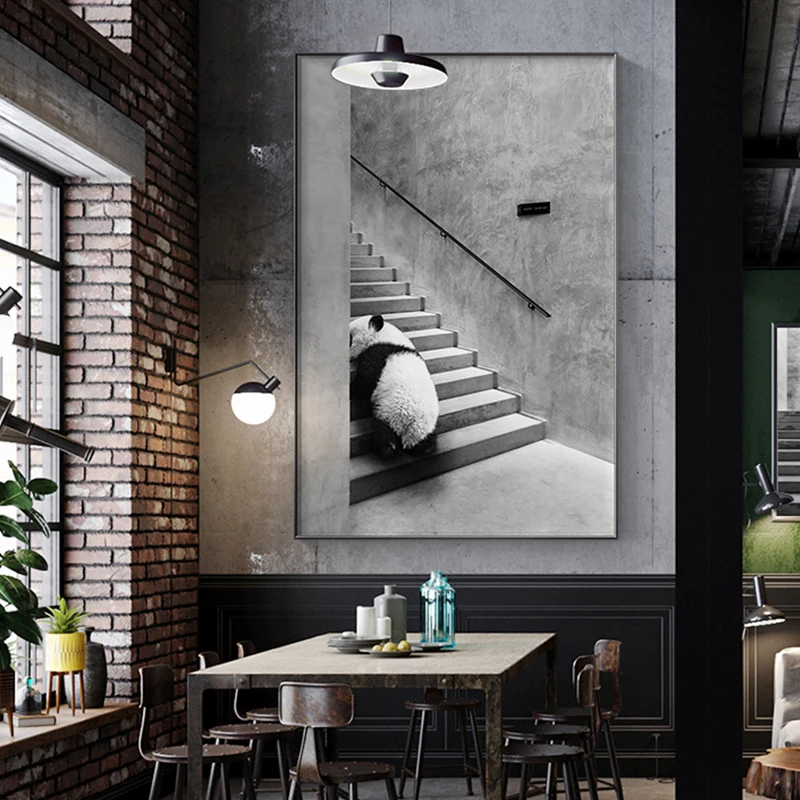 Современные промышленные черно-белые животные здания лестницы фотографии панда слон жираф холст живопись плакаты гостиной