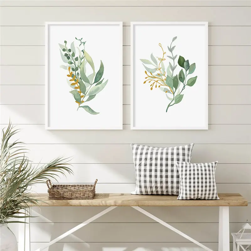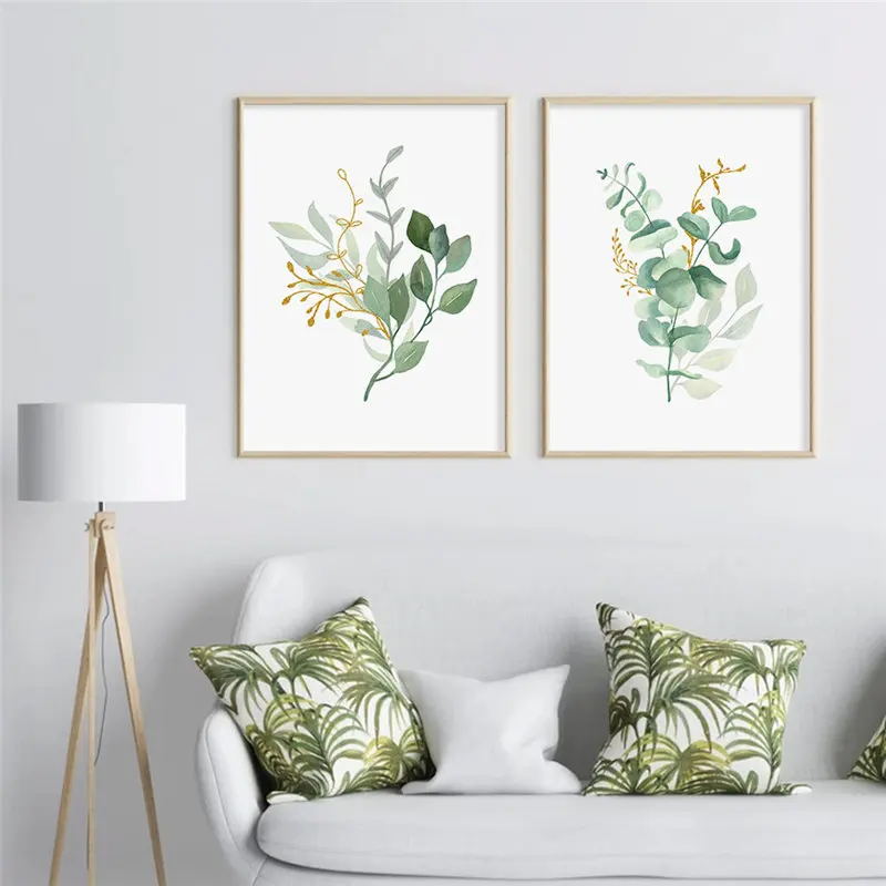 Современная Картина на холсте, зеленые растения, золотые листья, простота, настенный постер, картины для гостиной, домашний декор, без рамки