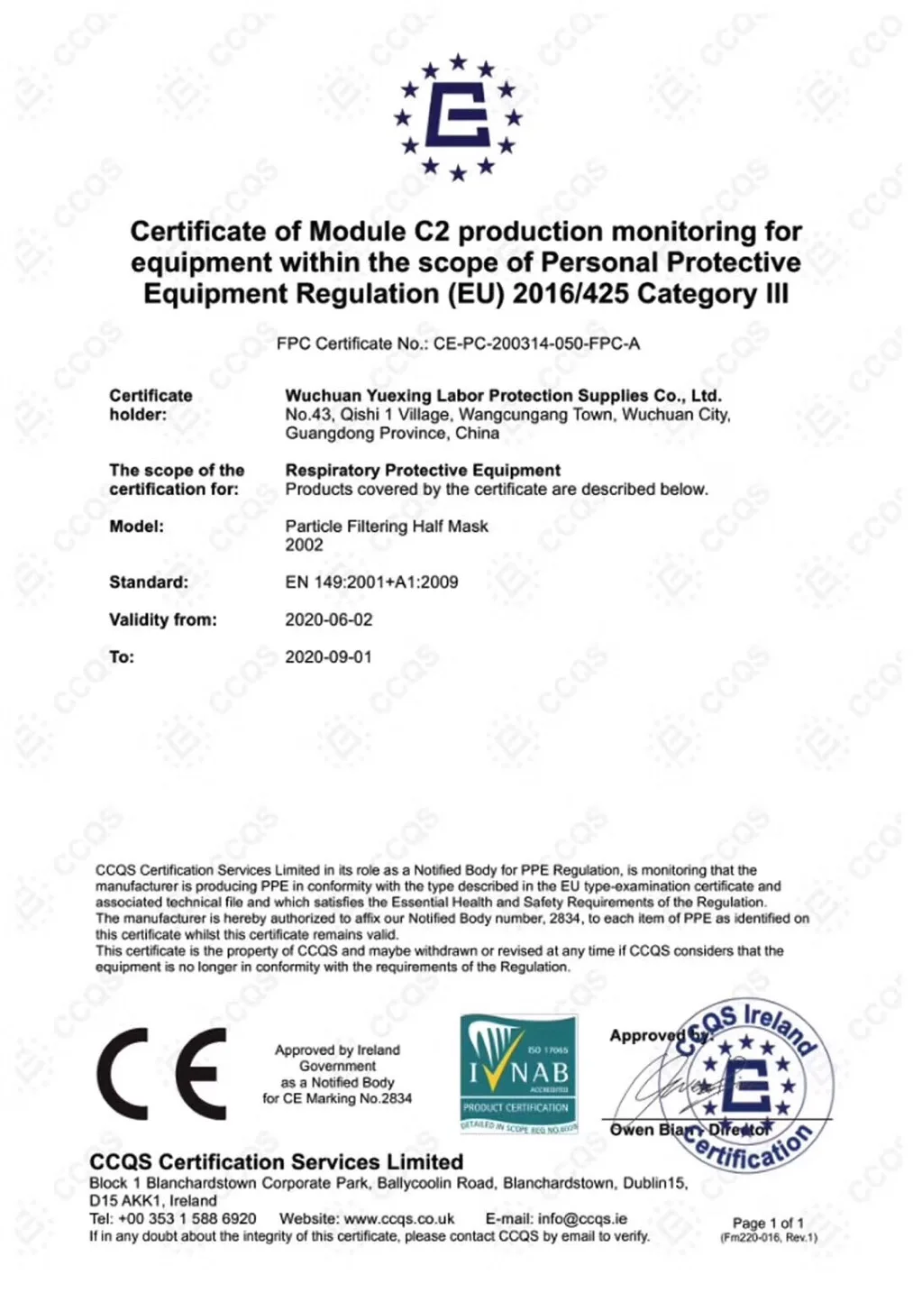 Маска имеет сертификацию ЕС FFP2 и китайскую сертификацию KN95. Поэтому логотипы FFP2 и KN95 печатаются на маске.
