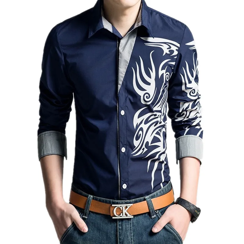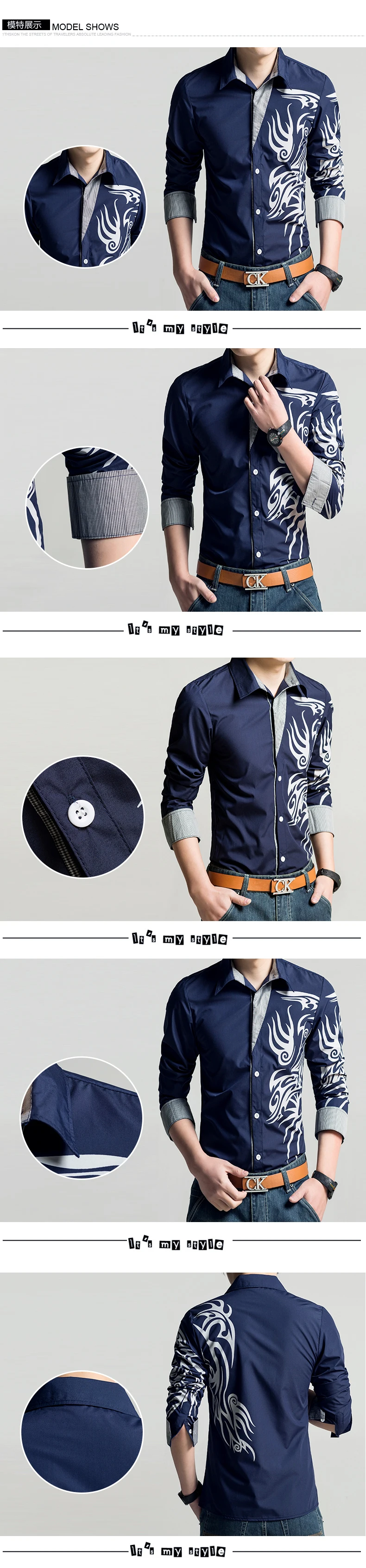 Новинка 2021, мужская деловая Повседневная рубашка с длинным рукавом и принтом драконамужская приталенная стильная Классическая рубашка, блузки