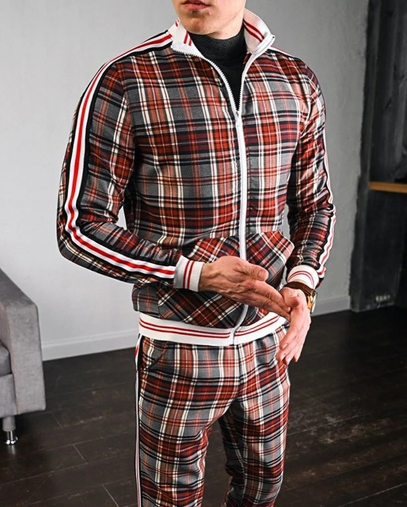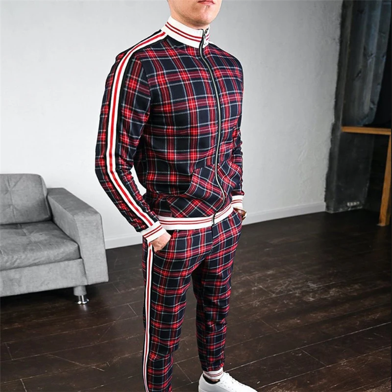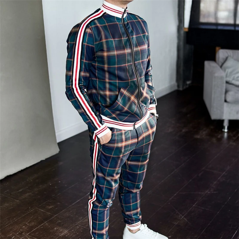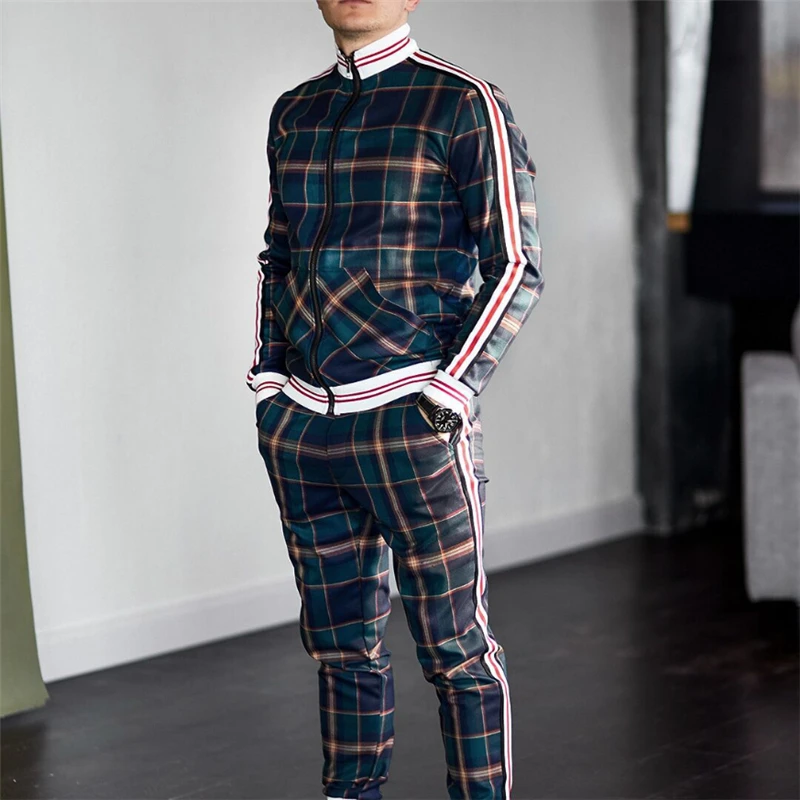 Спортивный костюм мужской в полоску, кофта Спортивная, на молнии, брендовый повседневный, осень