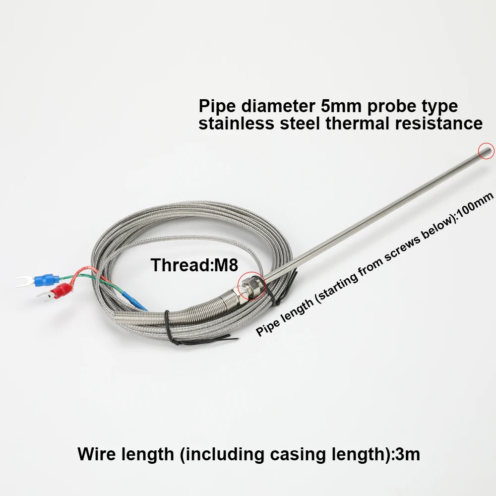 Отличный Температурный датчик K-типа, термопара из нержавеющей стали, длина кабеля 3 м, резьба M8, длина зонда 50 мм100 мм150 мм200 мм