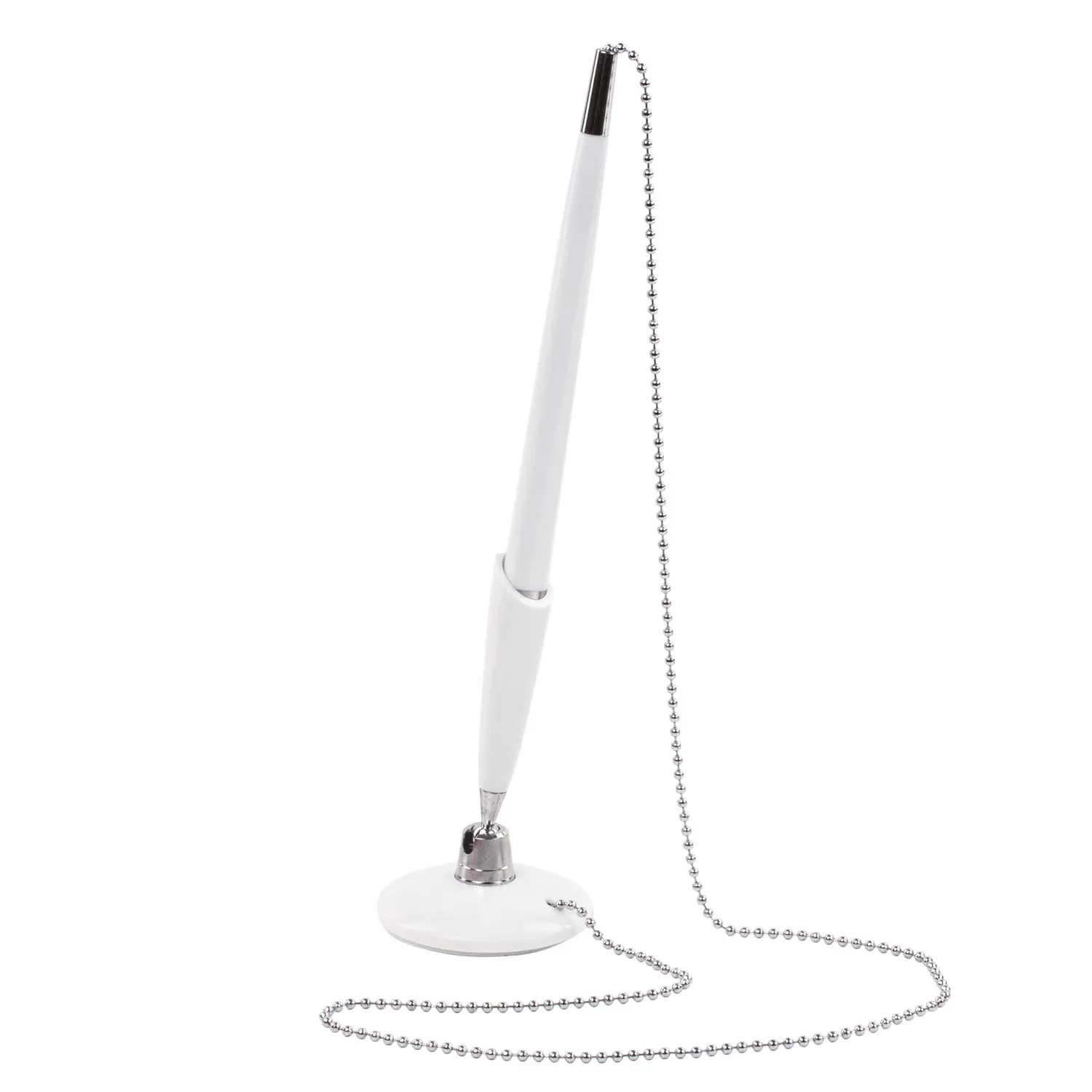 Ручка шариковая настольная BRAUBERG "Стенд-Пен Уайт1", СИНЯЯ, цепочка, корпус белый, линия письма 0,5 мм, 141044