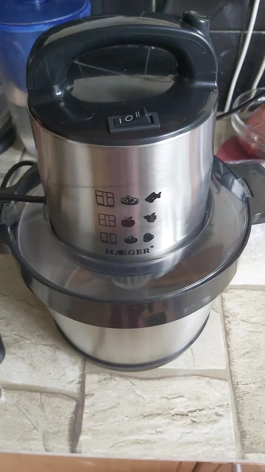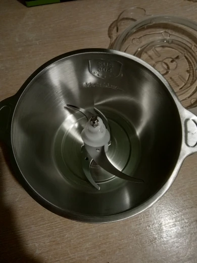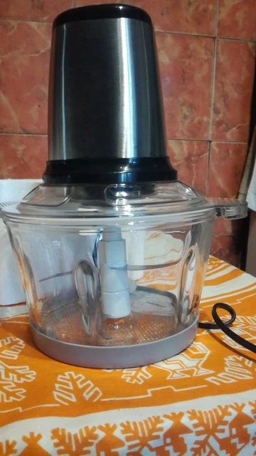 Отличная штучка для кухни.Раньше у меня был комбайн Бош с трехлитровой чашей, прослужил более 10 лет и служил бы дальше, если бы не уронила крышку и не сломала затвор.Очень удобно было перемалывать мясо, рыбу, ещё можно было устанавливать диски с тёрками. Купила другой Бош, он тоже хорош, но иногда лень возиться, доставать и собирать мясорубку, потом её мыть. Этот аппаратик-находка. Даже на первой скорости он очень мощный. Иногда для выпечки нужен более мелкодисперсный творог. Я пыталась это делать в блендере от Боша, но он там вязнет и потом его сложно достать из-под ножа. А здесь ножи съёмные. Взяла с металлической чашей, чтобы не бояться ронять).