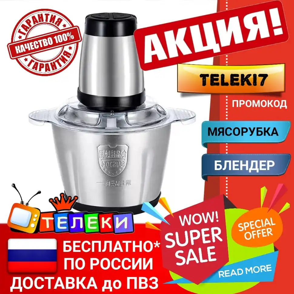 Мощная мясорубка блендер измельчитель с функцией миксера для приготовления фарша, рубленного мяса, соусов и смузи