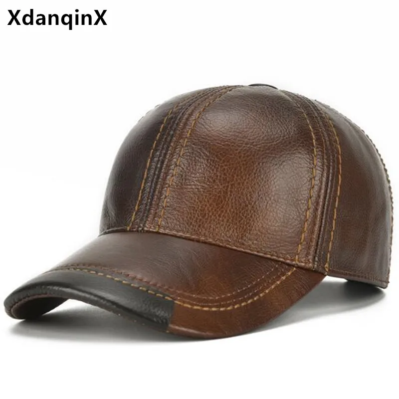 Бейсболка XdanqinX из воловьей кожи для мужчин среднего возраста, бейсболка с козырьком регулируемого размера, Повседневная брендовая Кепка