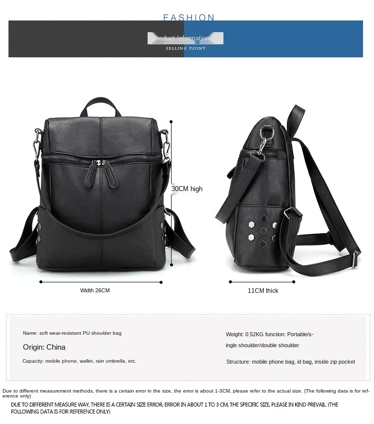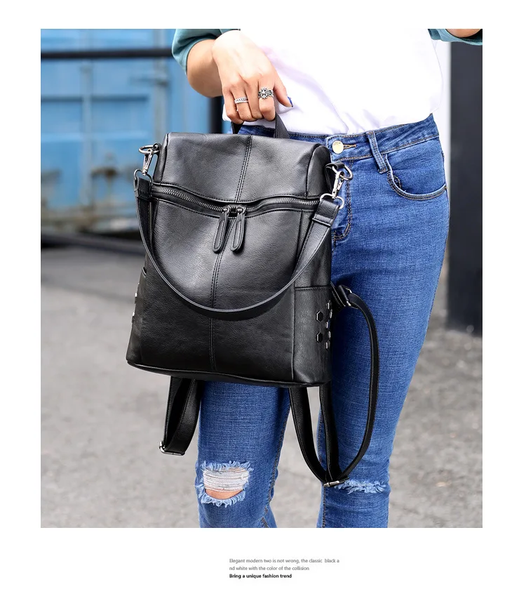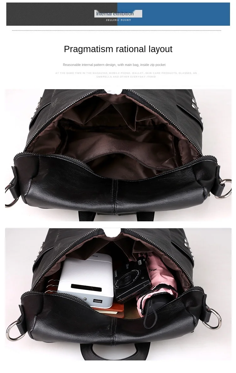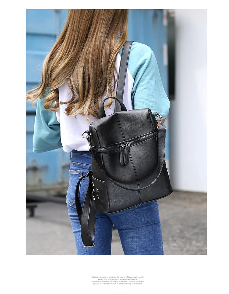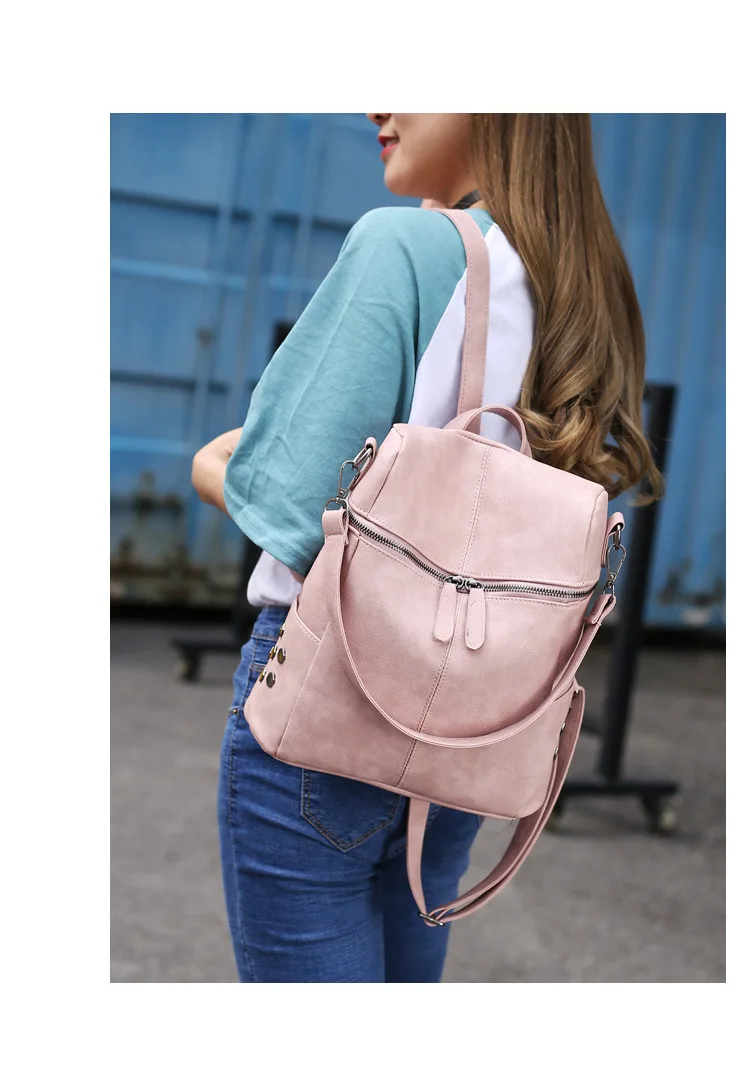 Женский рюкзак из высококачественной искусственной кожи, портативные школьные ранцы, водонепроницаемый Женский ранец, дорожный винтажный рюкзак на ремне