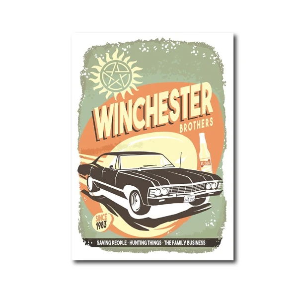 Плакат Sam Dean братья-Винчестеры печать Сверхъестественное ТВ-шоу Холст Живопись ретро Impala знак автомобиля Настенная картина домашний декор