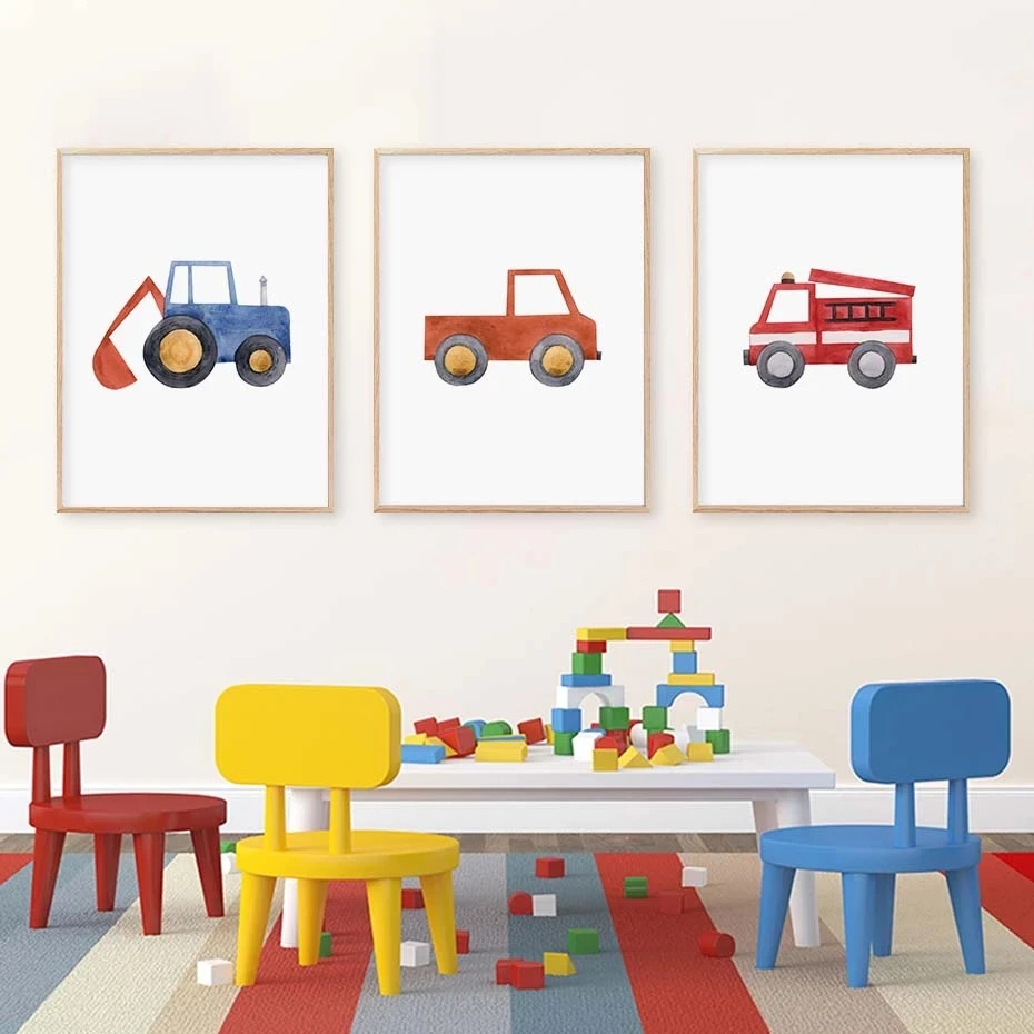 Настенный постер для детской комнаты мальчика, абстрактные плакаты, машинная печать, красная фотография на холсте для украшения детской спальни