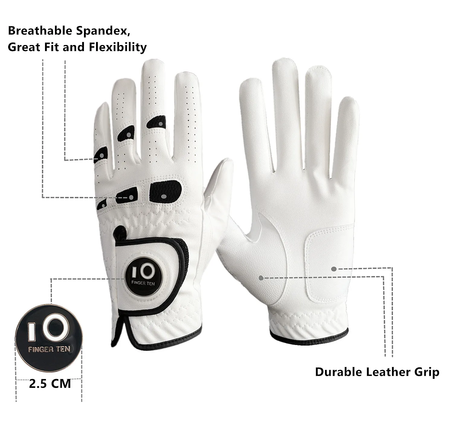 3 шт. всепогодные перчатки для гольфа, мужские кожаные перчатки с шаровым маркером, левая и правая перчатки, аксессуары для гольфа, Прямая поставка Описание: