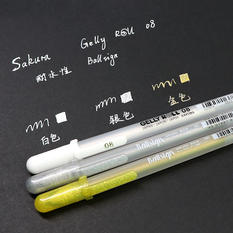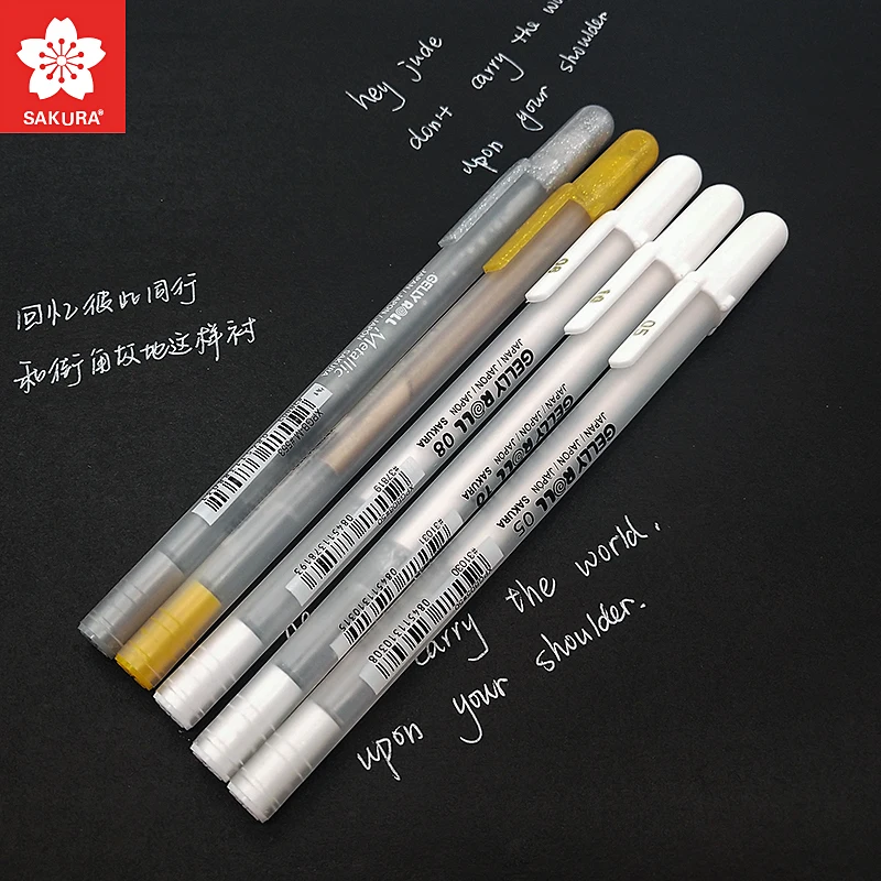 SAKURA GELLY шариковые ручки с черной картой для рисования, золотые, серебристые, белые маркеры для подсветки, тонкая подводка для рисования, XPGB