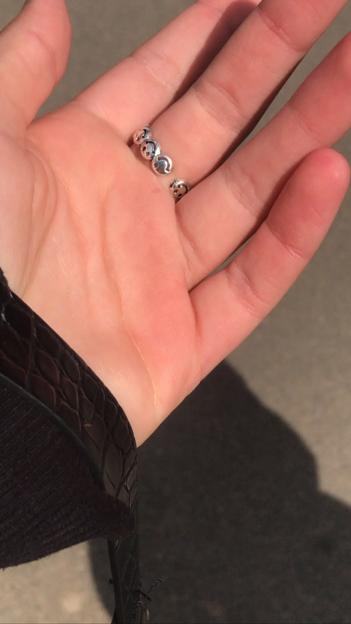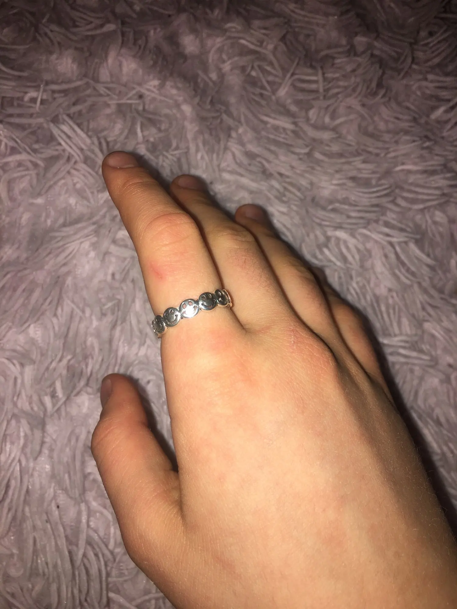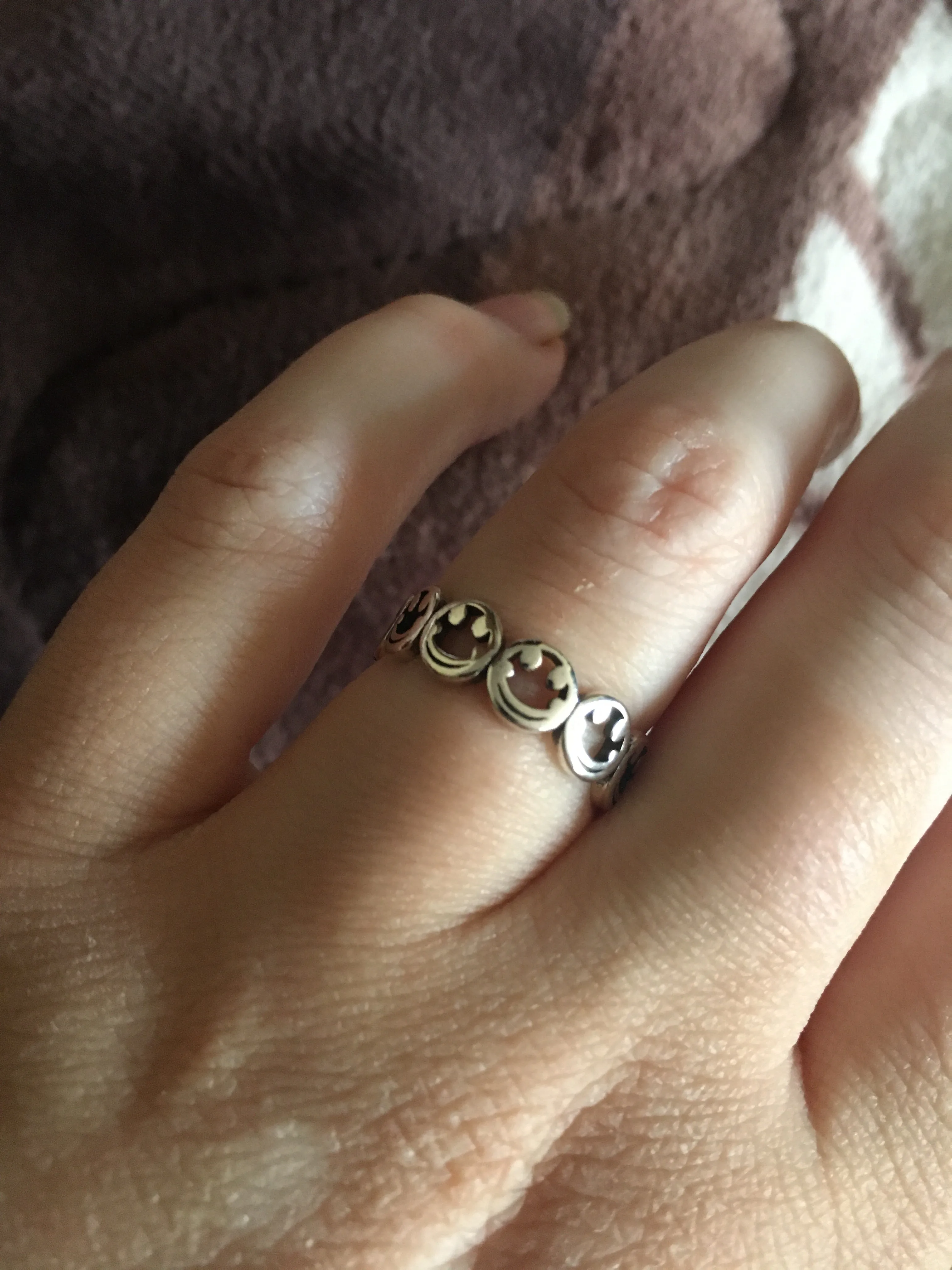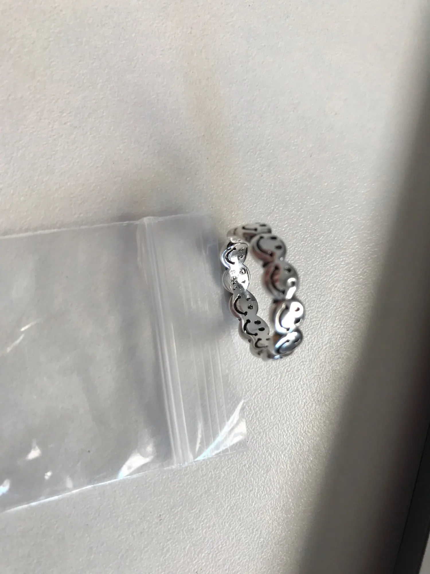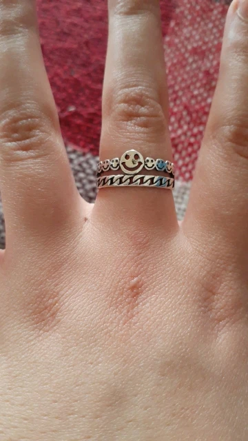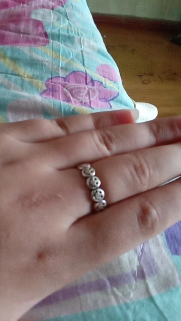Пришло почти через три недели в общей посылке. Кольцо - супер! Отличное качество. Единственное, что смайлы на фото выглядят крупнее, а на самом деле они такие же, как и а908. Вместо 8 крупных улыбок, там 11 мелких. Но мне всё равно нравится.