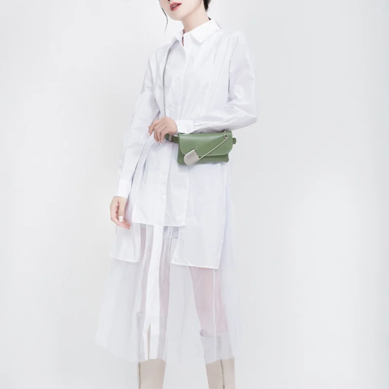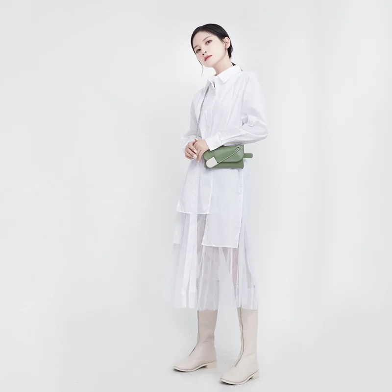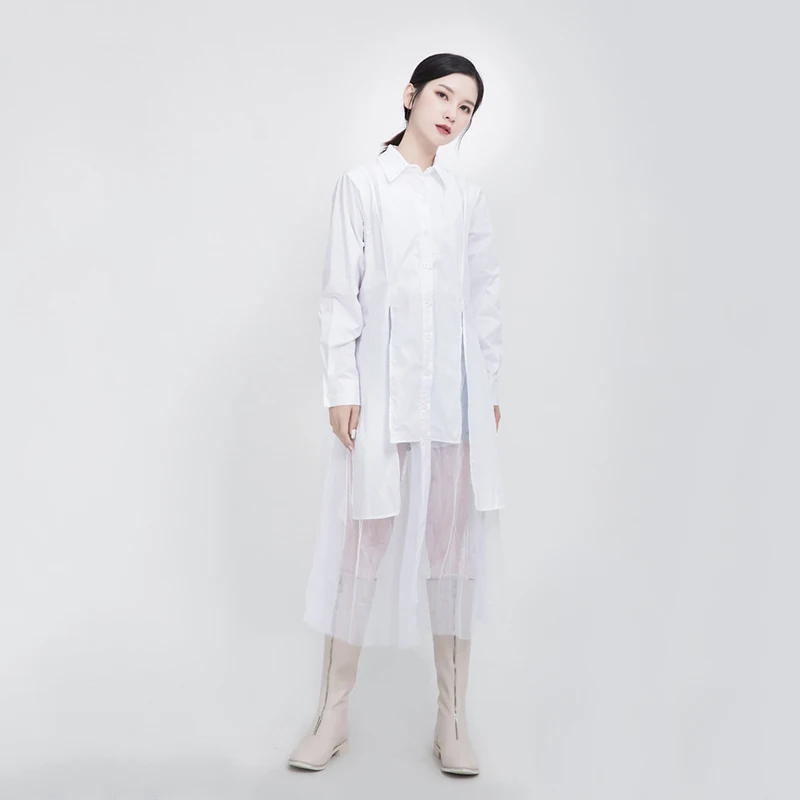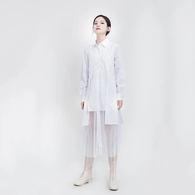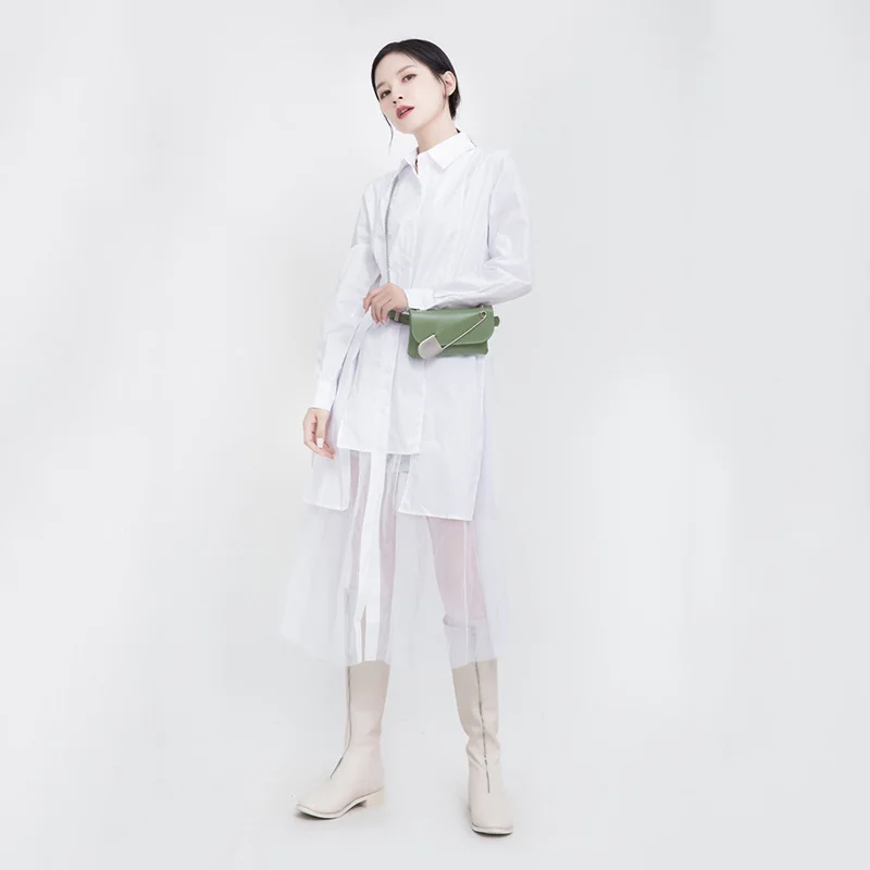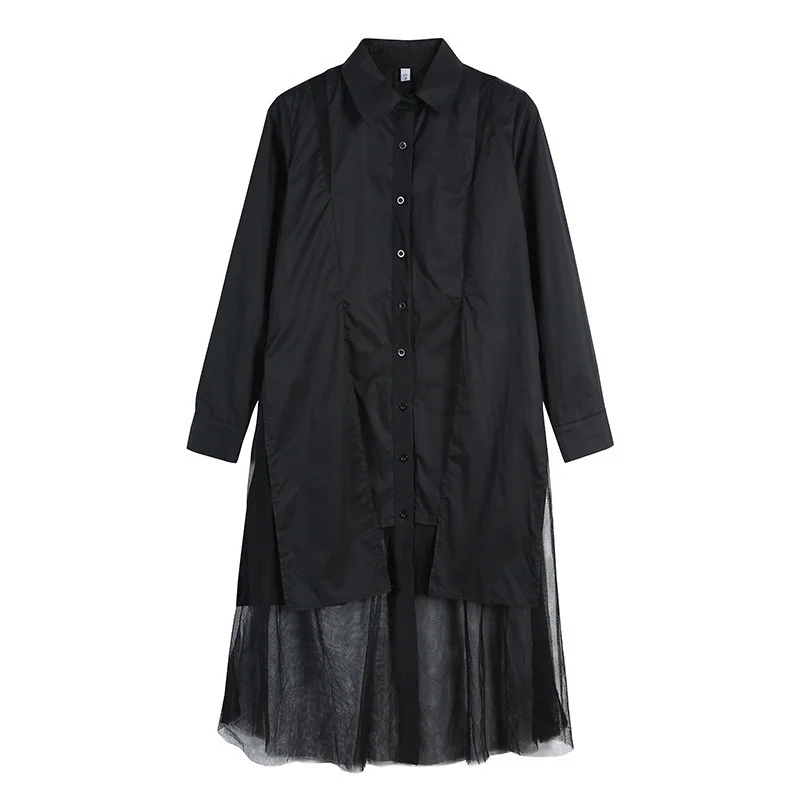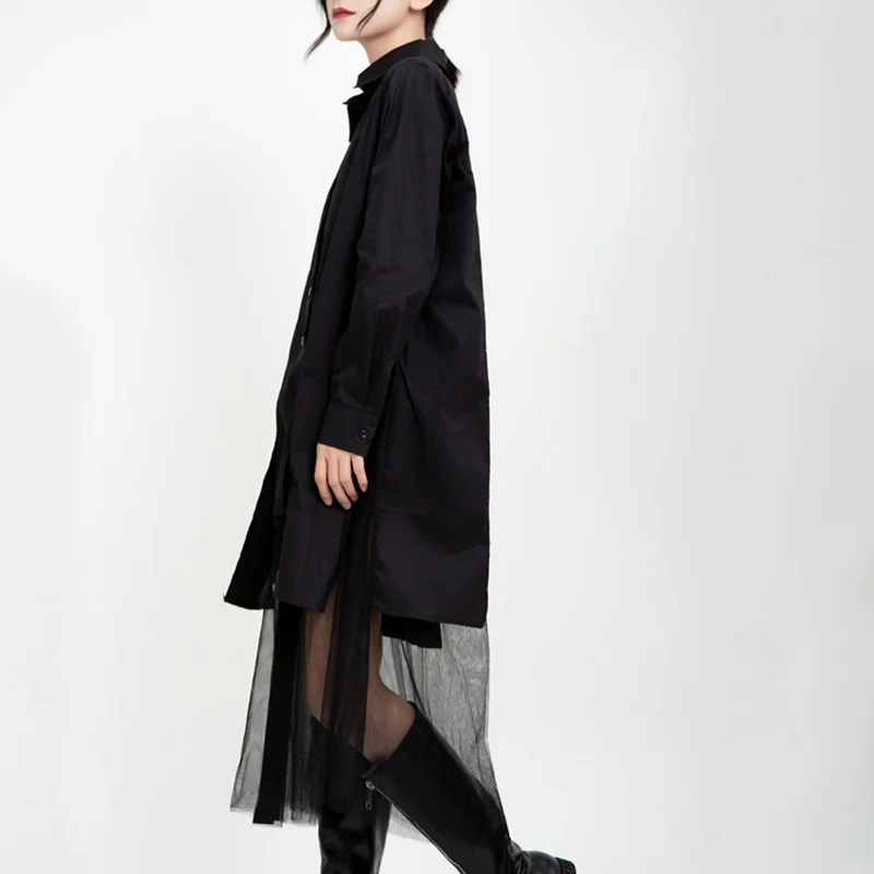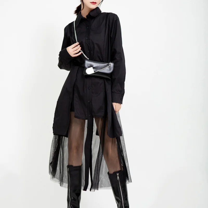 Женское платье средней длины EAM, черное асимметричное платье с длинным рукавом и отворотом, весна-осень 2022, 1DD5182