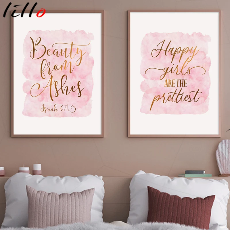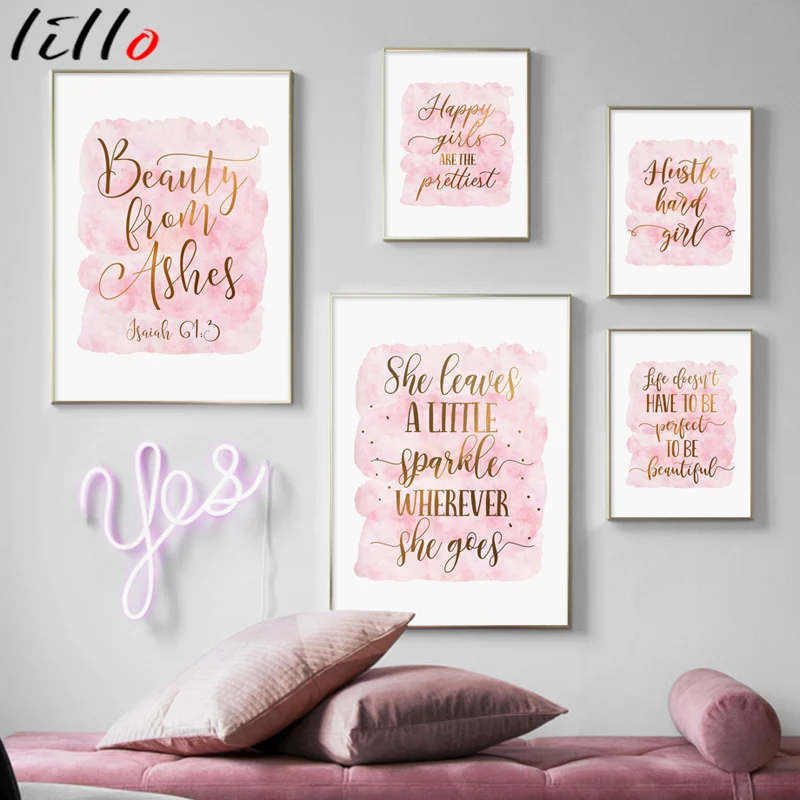 Постеры и печатные картины на стену для гостиной, мотивирующий вдохновляющий буквы, розовый, художественная стена с цитатой, Скандинавская Картина на холсте