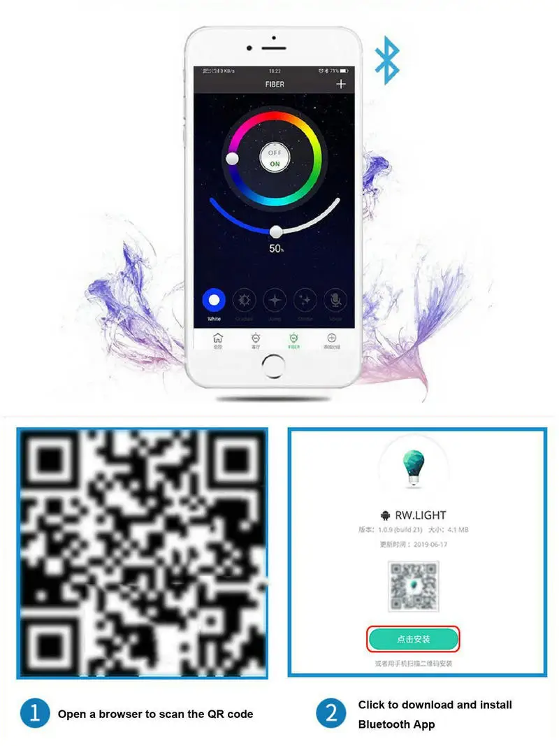 Особенности-Простота установки-Не требуется соединительных линий-Беспроводная Синхронизация-Управление смартфоном (приложение)-Голосовое управление музыкой-Многоцветные изменения-Функция памяти-Основной, используемый для внутреннего дома, волоконно-оптический автомобильный атмосферный светильник, украшения интерьера автомобиля, светильник для кинотеатров, Домашний СветильникГостиничные лестницы и т. Д.Параметры