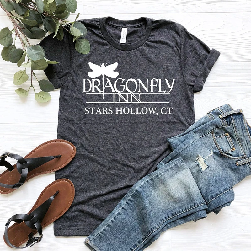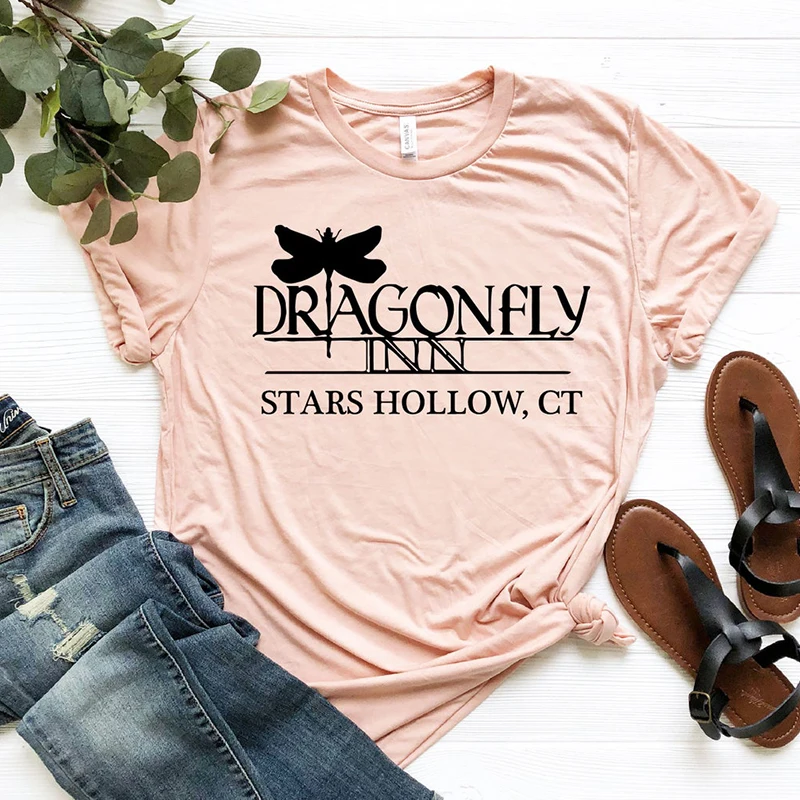 Женская футболка Dragonfly Inn, футболка для ТВ-шоу девочек Gilmore, футболка со звездами и вырезами, футболка с надписью Lorelai Rory, почетные футболки для девочек, топы Tumblr, футболка