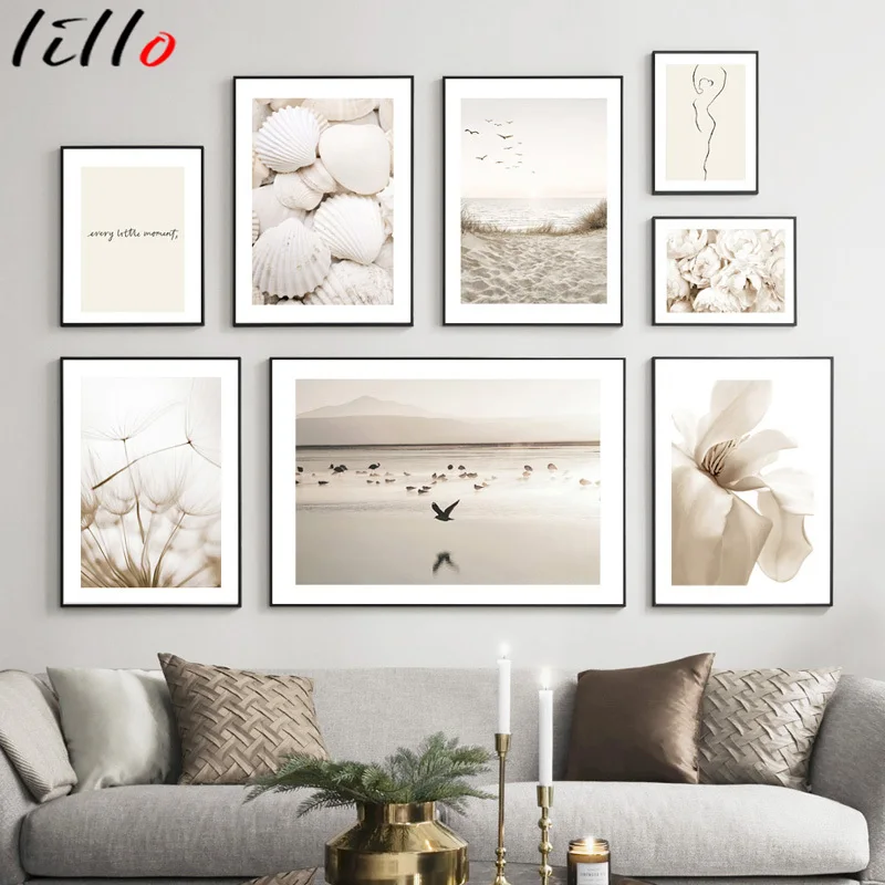 Картина на холсте, с изображениями одуванчиков, заката, птиц, пляжа, травы, скандинавских цветов, настенный художественный плакат