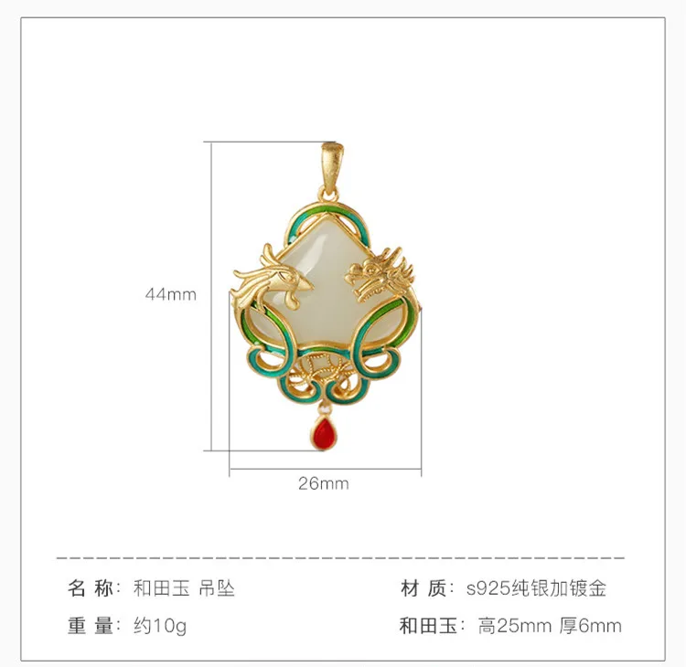 (Ручное измерение: ошибки нормальные)Вес нетто: около 10 ГСМПодвеска: около 26х44х6 ммНефрит: около 25 ммКомпоненты в комплекте:1 X Подвеска1 X Подарочная коробка1 х ткань для полировки серебра(Не уродливый вообще! Независимо от того, как меняются времена, классические традиционные ювелирные изделия длятся навсегда! Углиless в основном будет работать над этническими иконами и рекламировать китайскую культуру!)