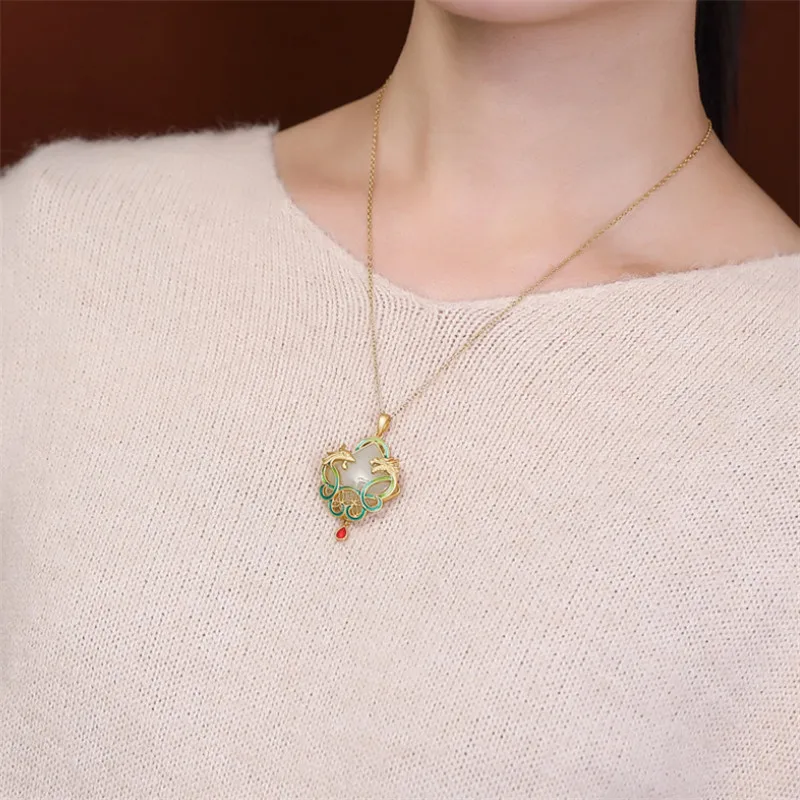 Традиционная китайская культурная бижутерия Uglyless Dragon Phoenix, женские эмалированные этнические квадратные нефритовые подвески без цепей с животными, серебро 925 пробы