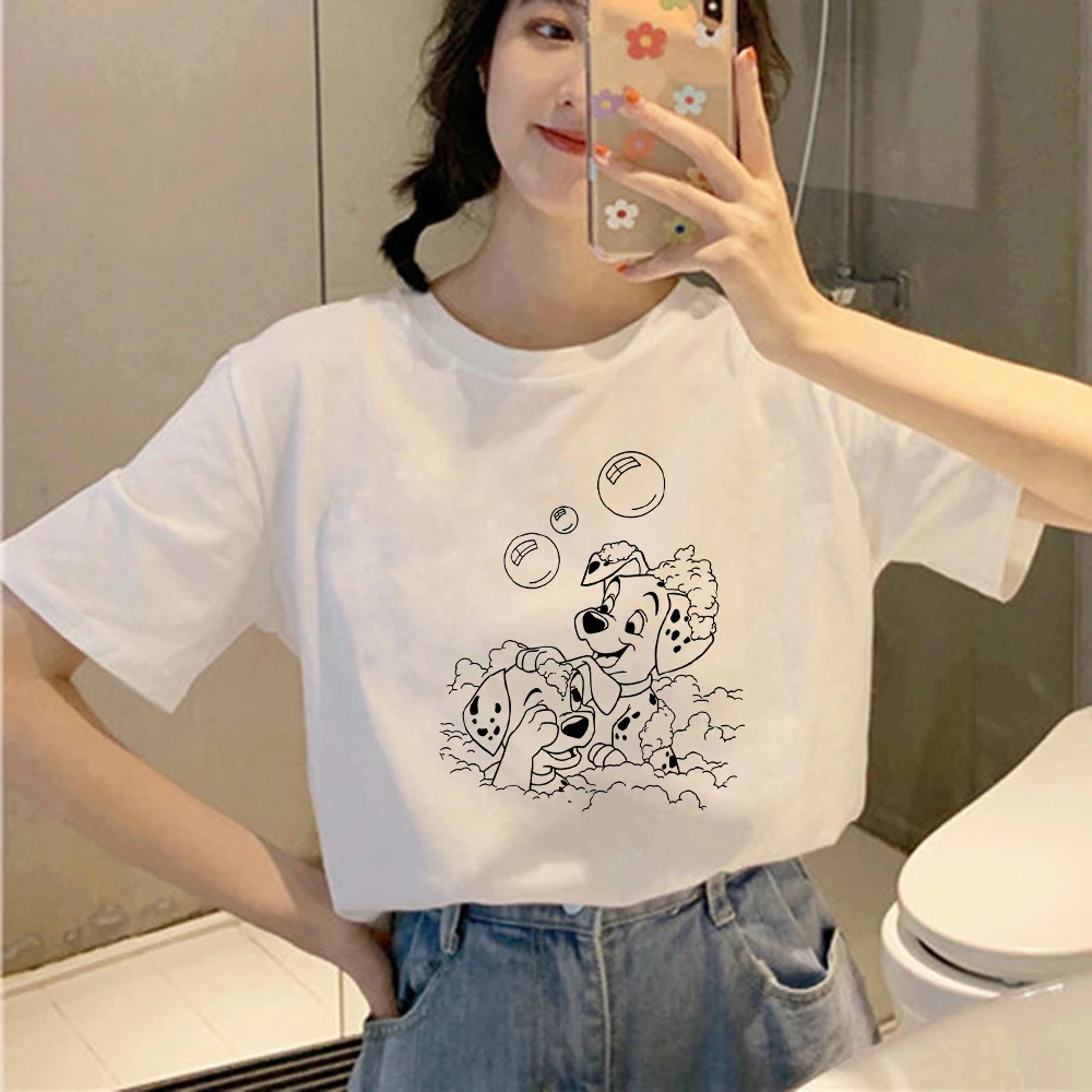Футболка Disney 101 для далматинцев, Женская винтажная белая футболка, женский летний топ, одежда, футболка с графическим принтом маленьких пятнистых собак