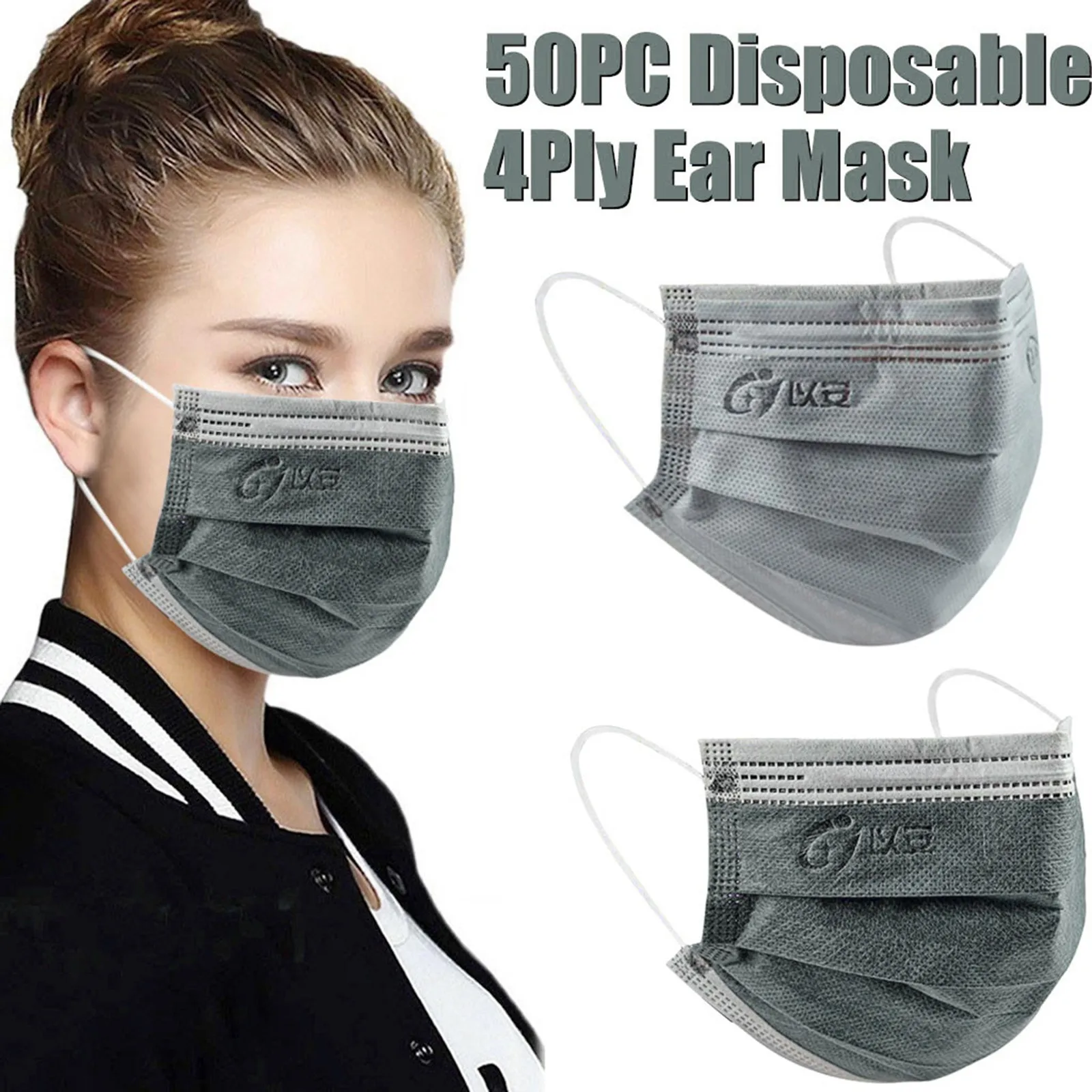 Маска одноразовая унисекс с активированным бамбуком, Пылезащитная, с петлей для ушей, 4 слоя, 50 шт.